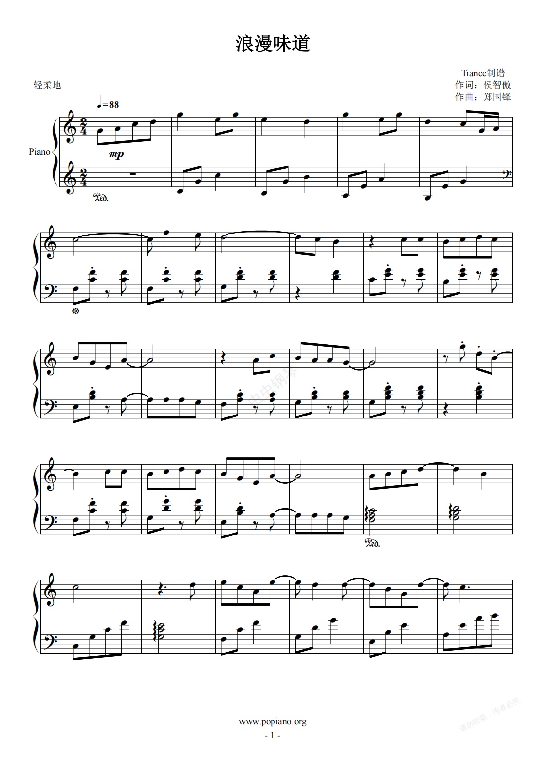 钢琴谱:《浪漫味道》暗格里的秘密,C调599难度