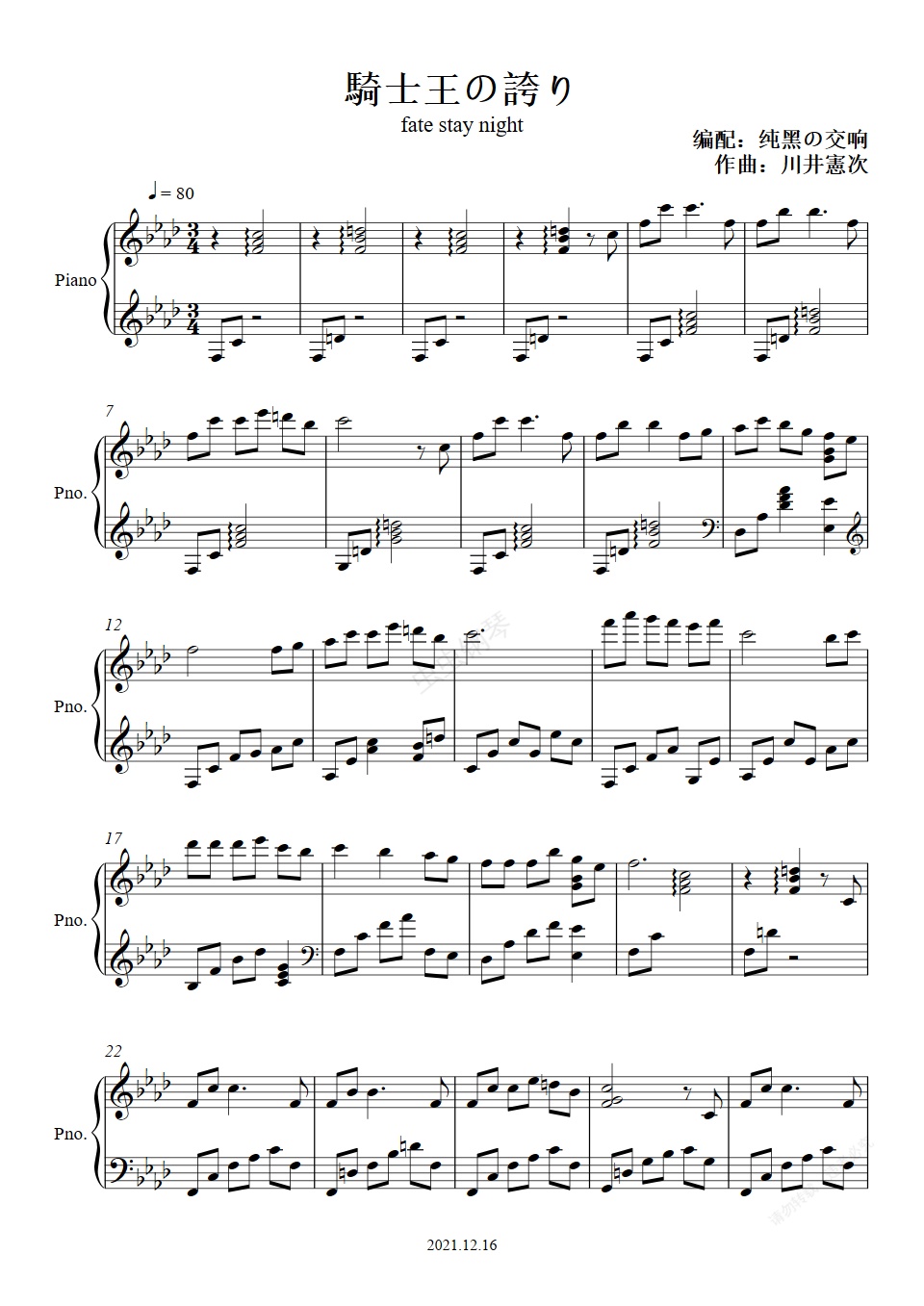 钢琴谱:騎士王の誇り(2)- fate stay night