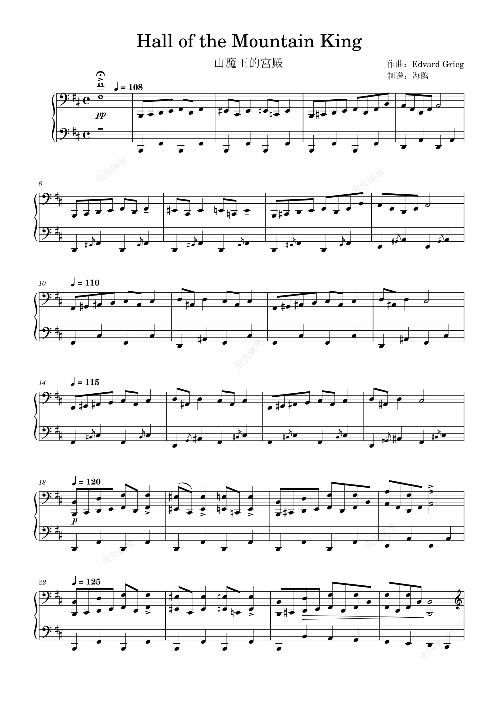 钢琴谱:在山魔王的宫殿里-格里格 In The Hall Of The Mountain King 《培尔·金特》组曲No.1,Op.46