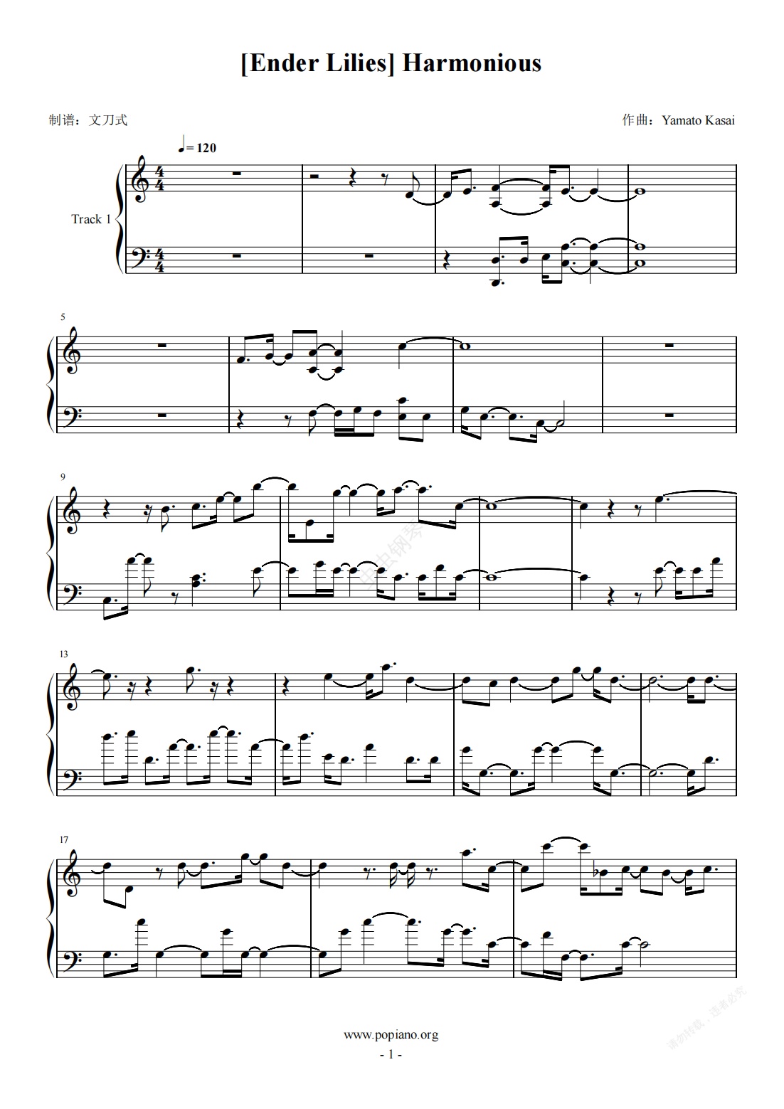 钢琴谱:终焉的莉莉《Harmonious》简化版