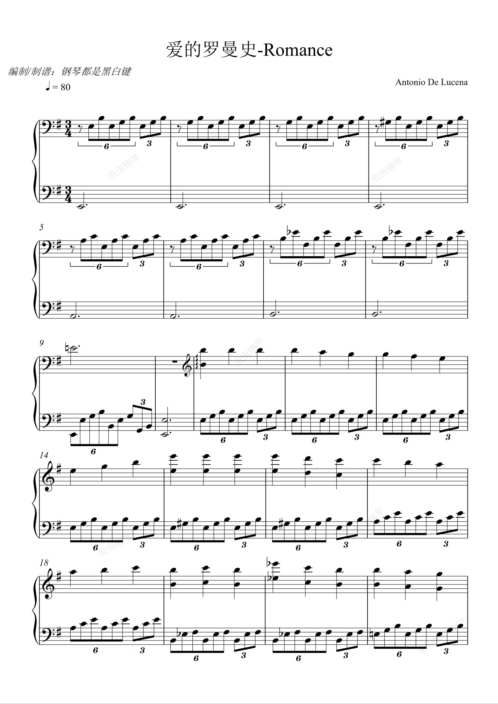 《爱的罗曼史》这首乐曲,主旋律取材于西班牙传统民谣。1952年,法国影片《被禁止的游戏》的导演,邀请西班牙著名吉他演奏家叶佩斯,为这部影片配乐。该影片的主题音乐就是这首《爱的罗曼史》,《被禁止的游戏》上映以后,《爱的罗曼史》广为流传;乐曲优美纯朴的旋律与清澈的分解和弦完全溶为一体,充满温柔和浪漫的气息,是一首不朽名作。 这首曲子的含义:是叶佩斯为了表达爱情的浪漫而改的西班牙民谣,所以名字叫。此曲也是吉他学习者的必须学的一首曲子