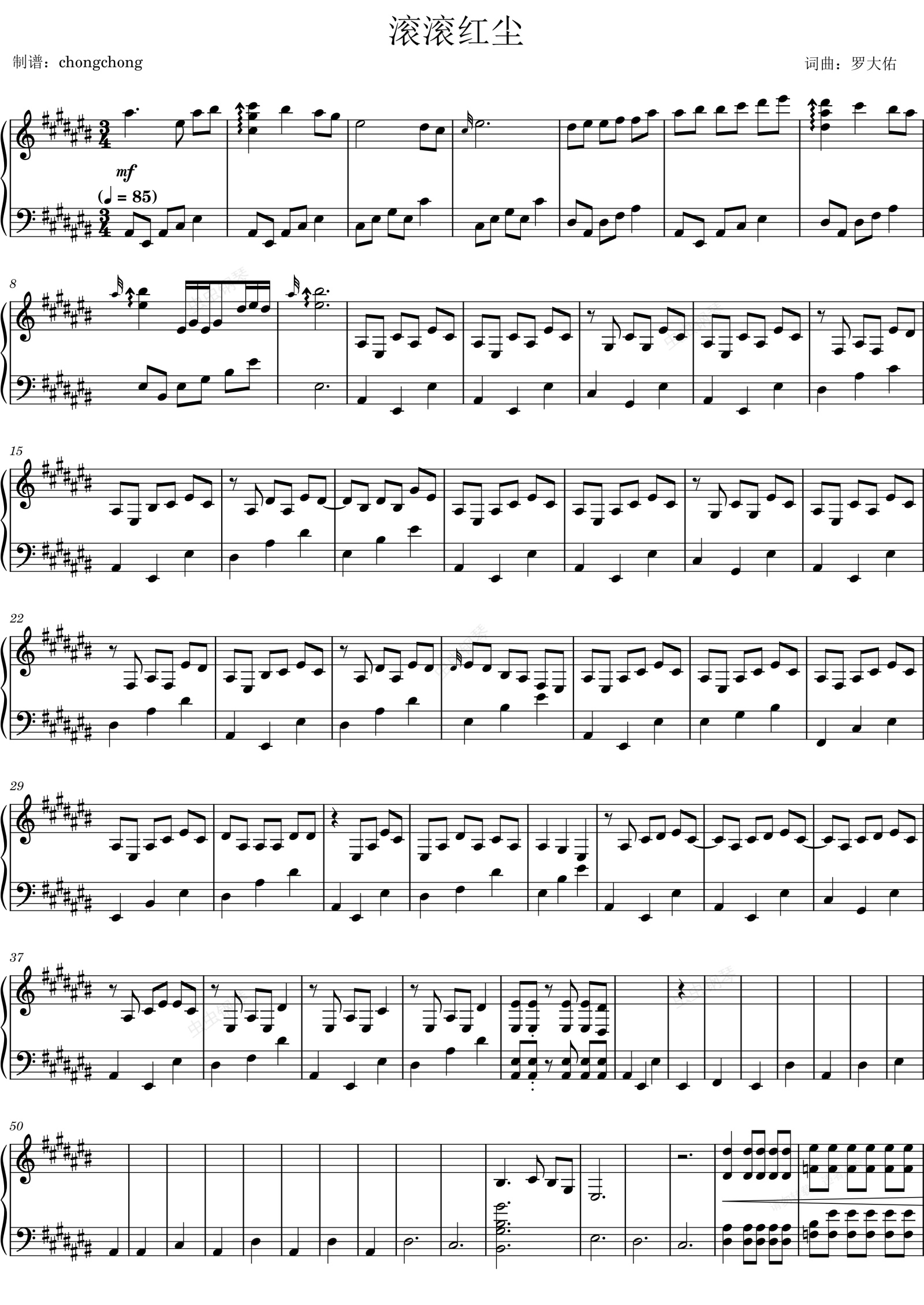 钢琴谱:滚滚红尘live钢琴