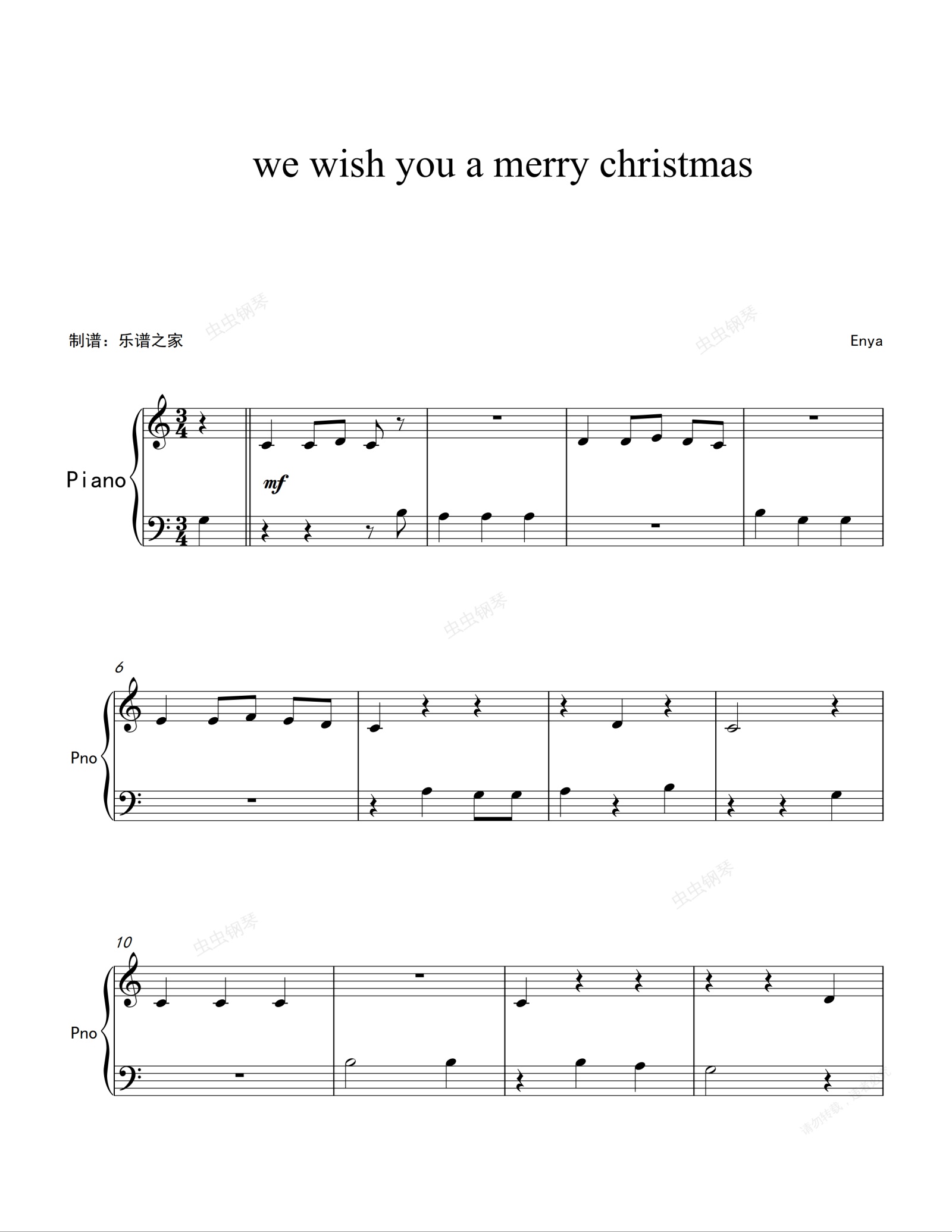 钢琴谱:高清 初学必弹 圣诞颂歌 我们祝您圣诞节快乐We Wish You a Merry Christmas钢琴谱 独奏谱