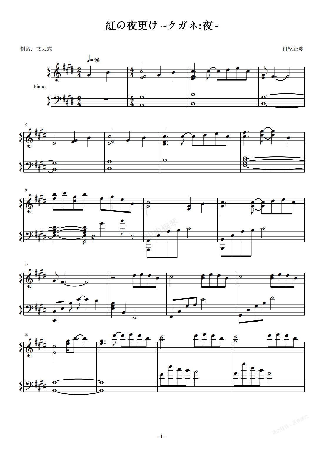 钢琴谱:最终幻想14【黄金港~夜】优化版