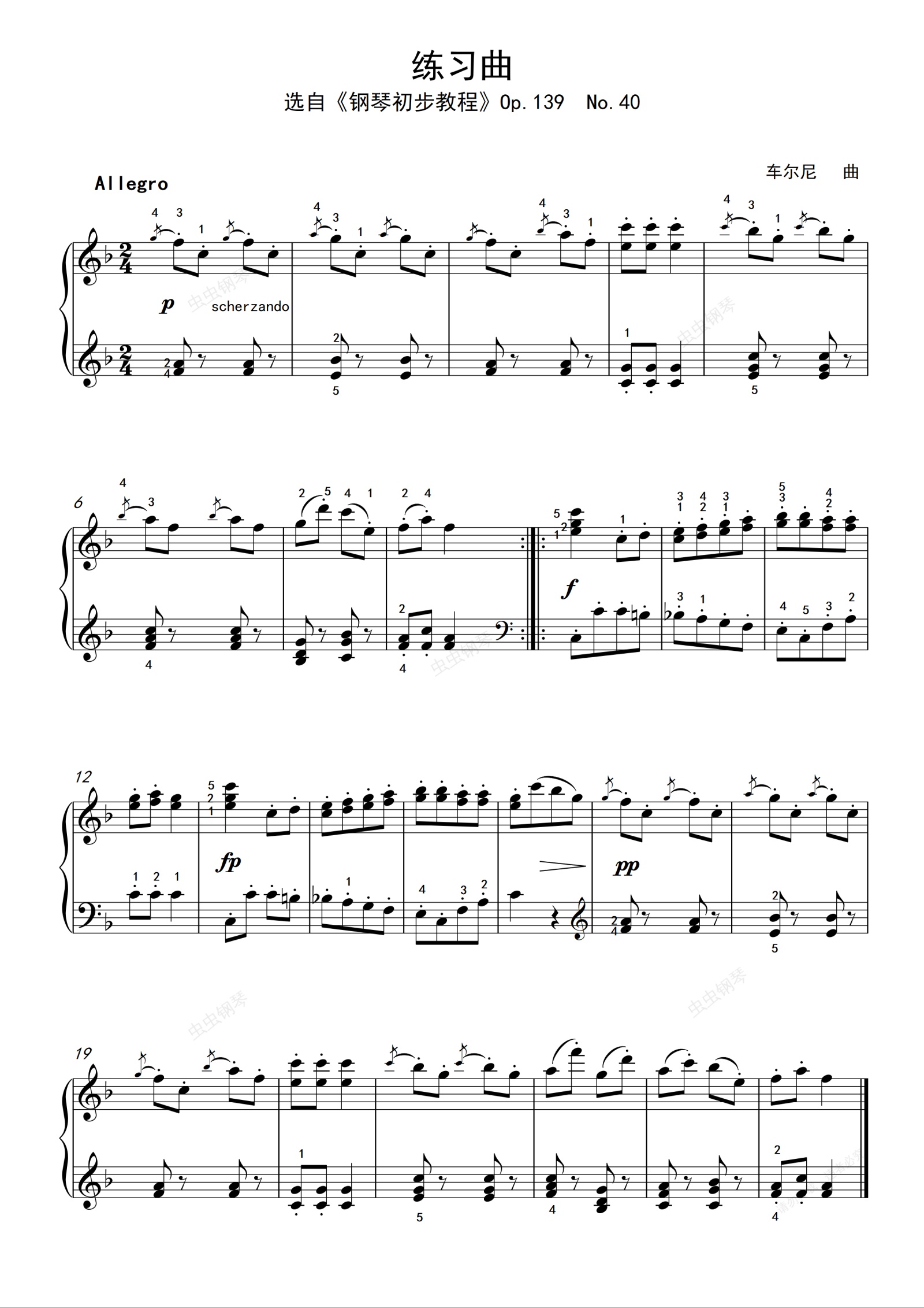 钢琴谱:1级-练习曲-车尔尼OP.139 No.40