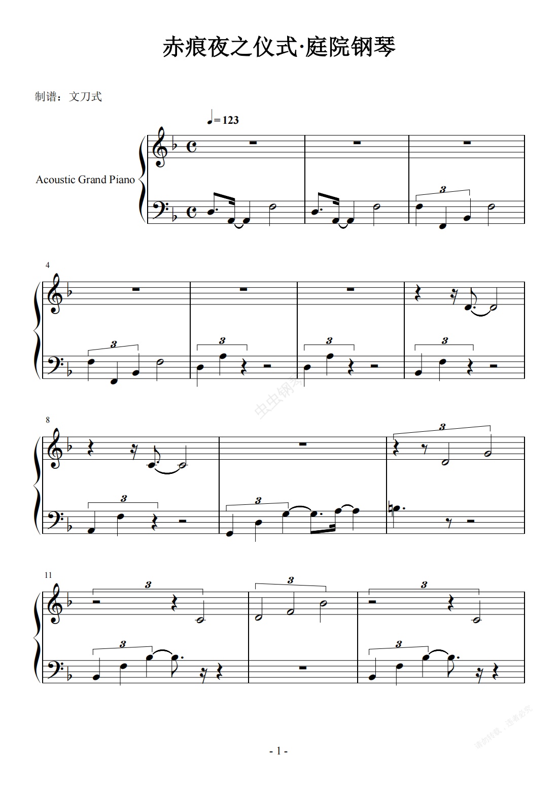 钢琴谱:血污夜之仪式《庭院钢琴》OST