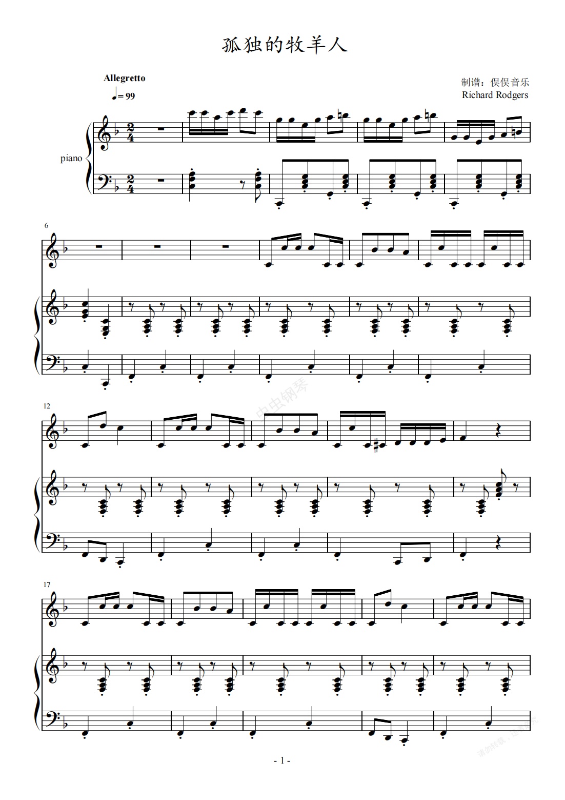 钢琴谱:孤独的牧羊人(合唱伴奏谱)