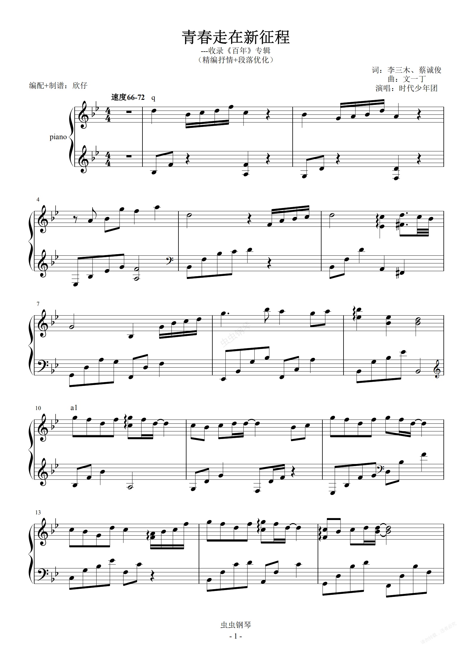 钢琴谱:时代少年团-降B《青春走在新征程》(精编抒情+段落优化)