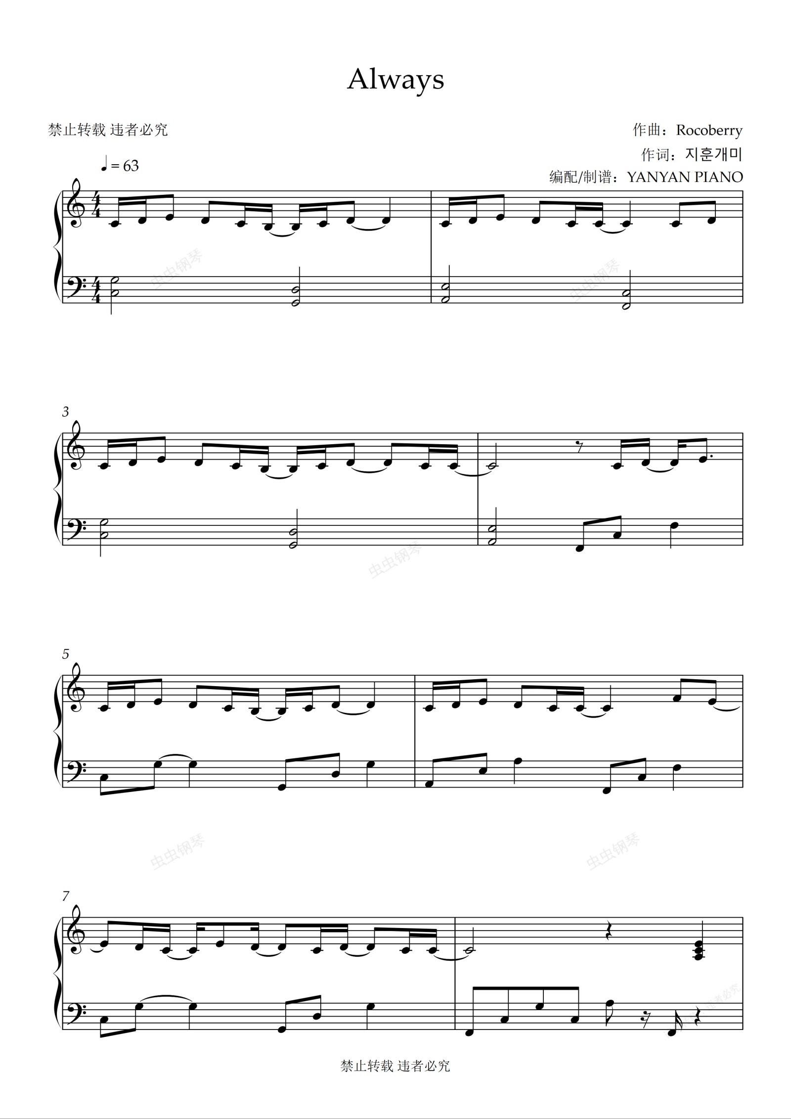钢琴谱:好听易弹【always永远】太阳的后裔OST 尹美莱