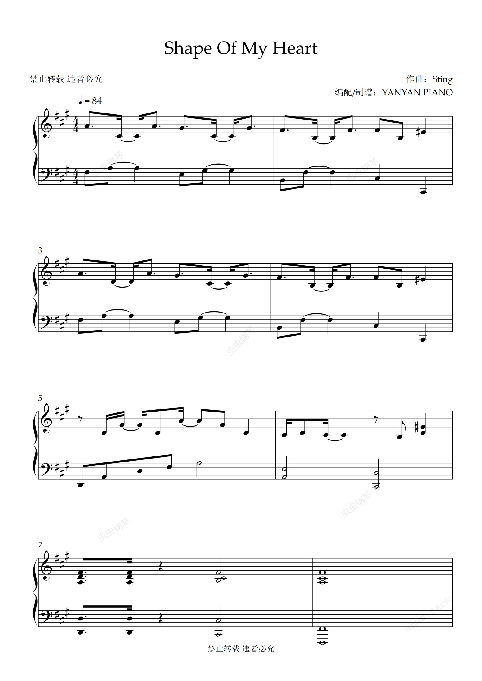 钢琴谱:好听易弹【Shape of My Heart】这个杀手不太冷OST Sting