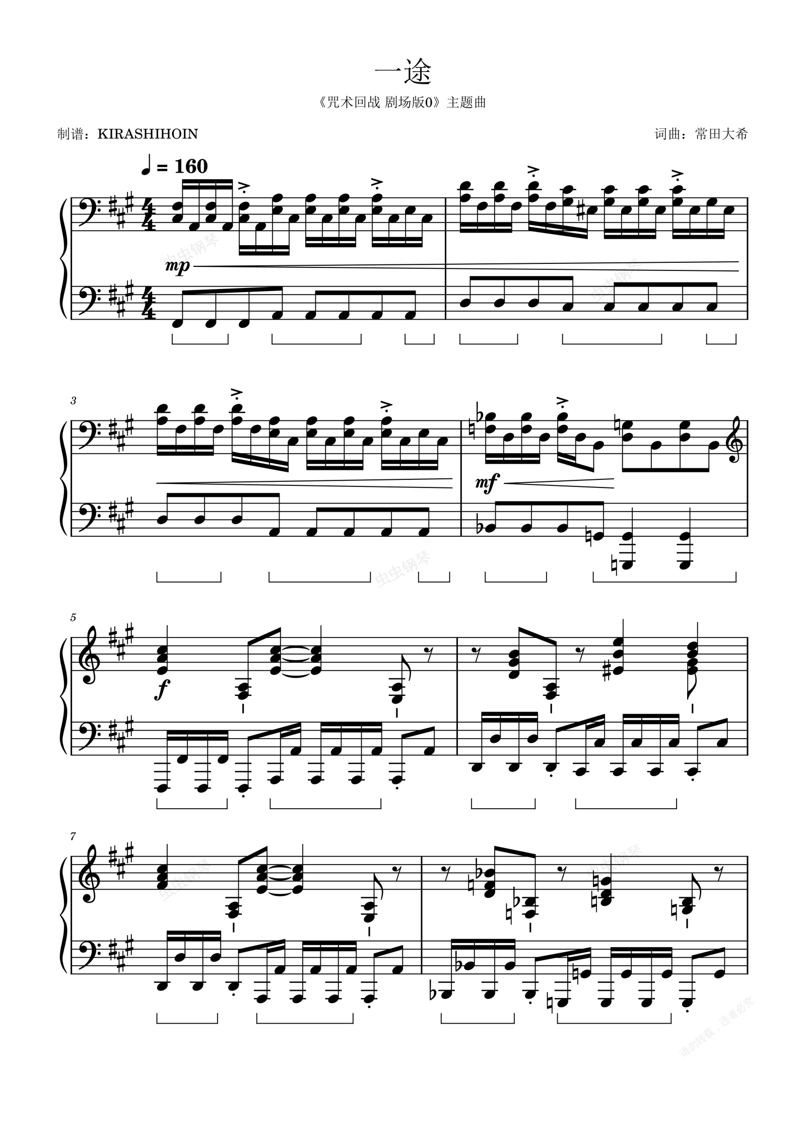 钢琴谱:一途(《咒术回战 剧场版0》主题曲)- King Gnu
