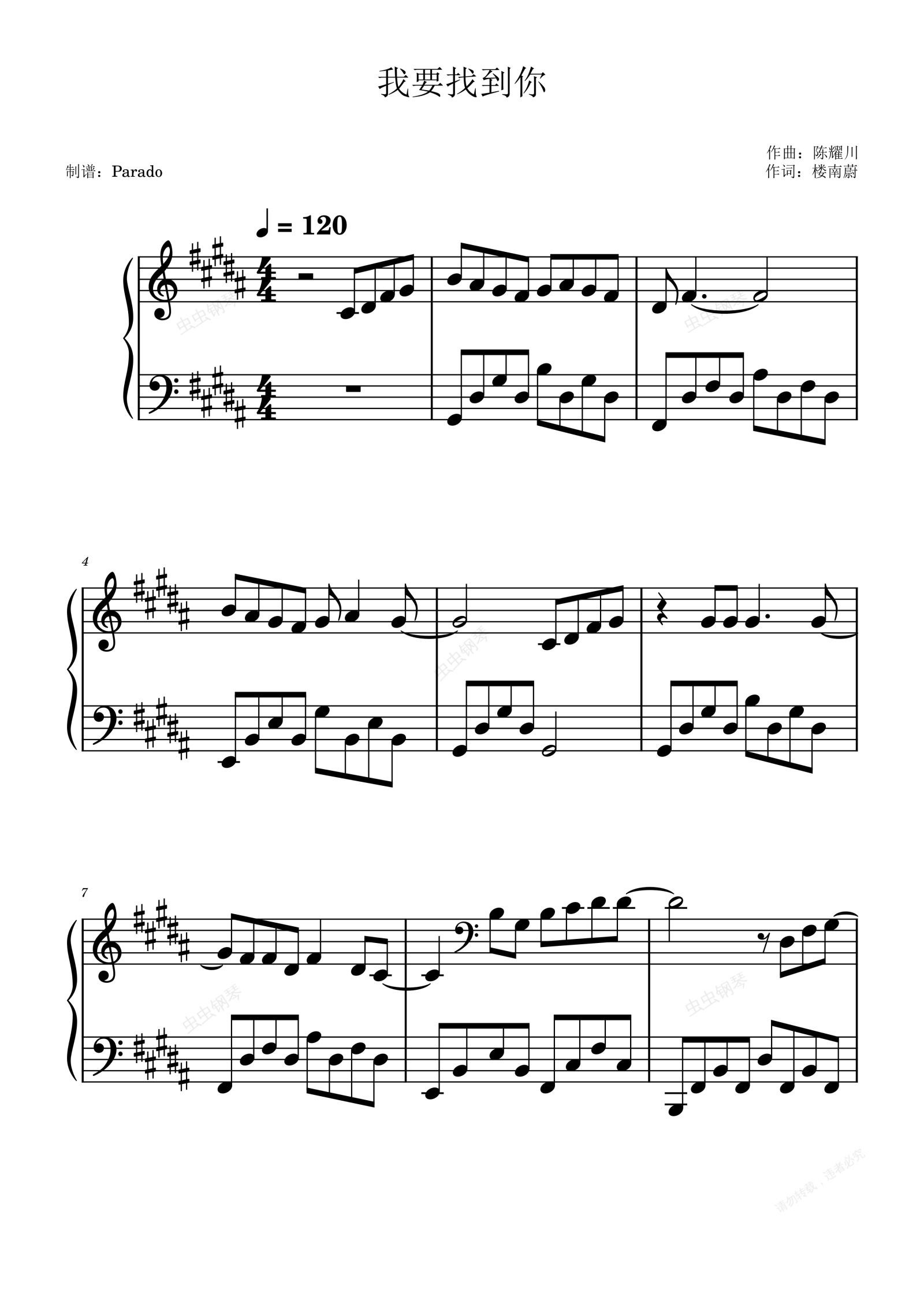 钢琴谱:我要找到你-陈明-抖音热曲-好听又好弹