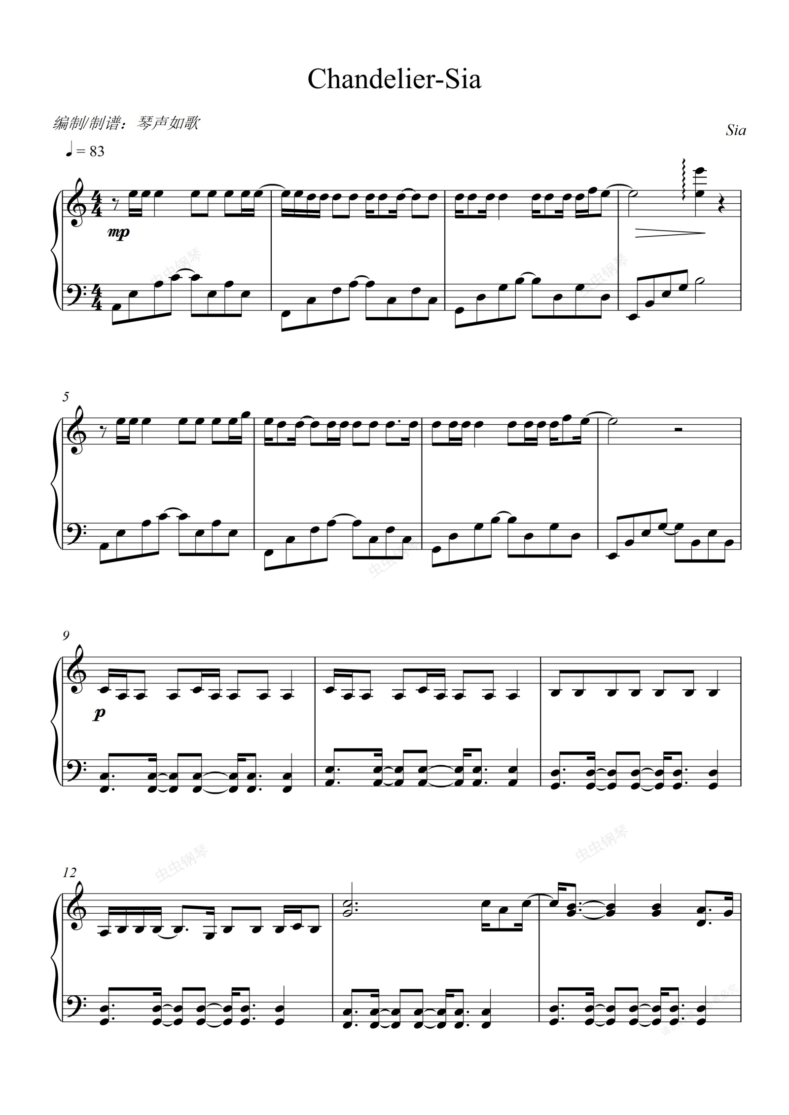 钢琴谱:Chandelier-Sia
