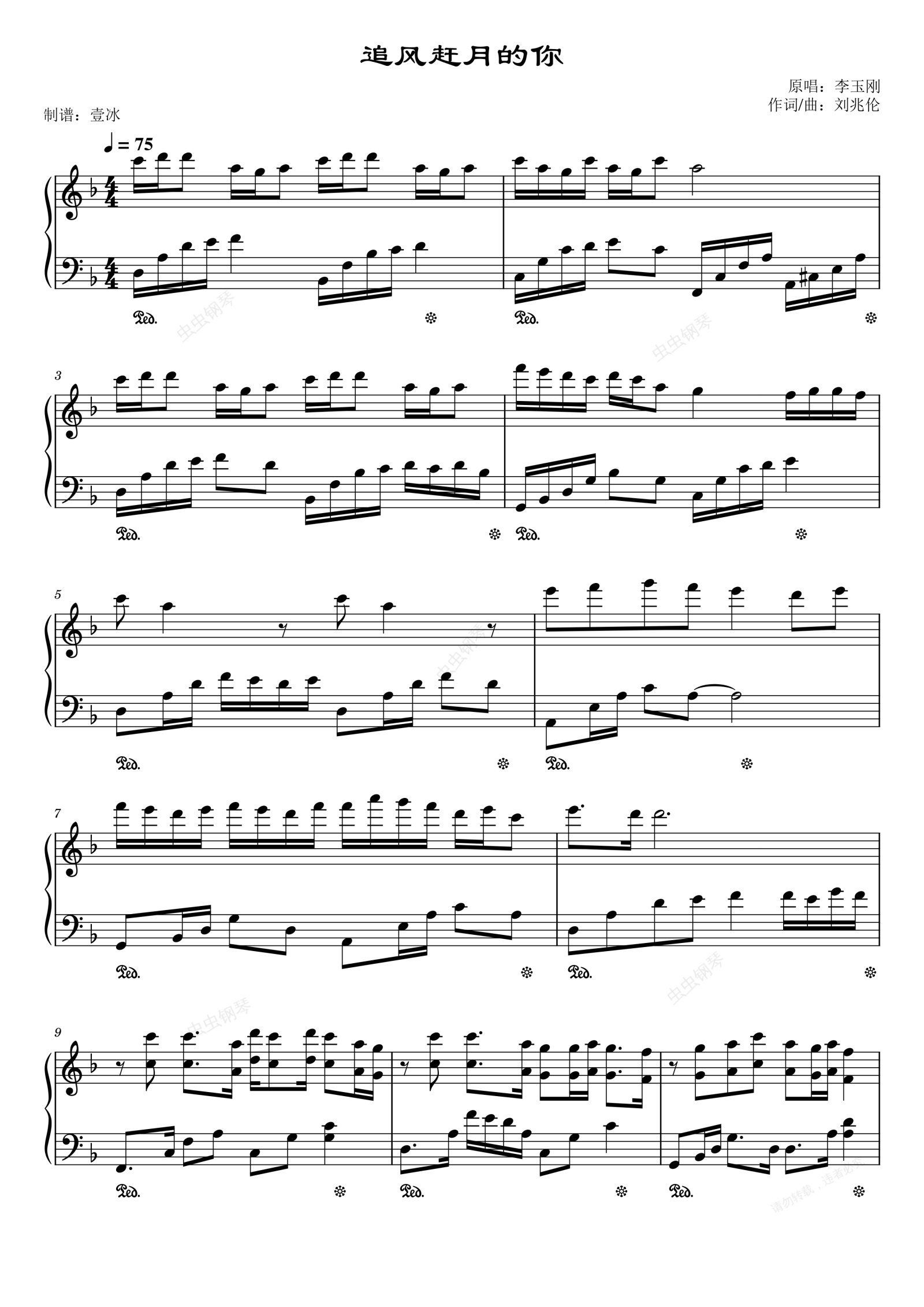 钢琴谱:追风赶月的你//李玉刚-原调版
