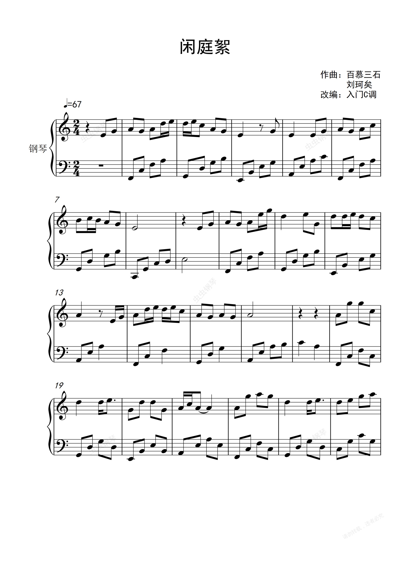 钢琴谱:刘珂矣《闲庭絮》入门C调简单版