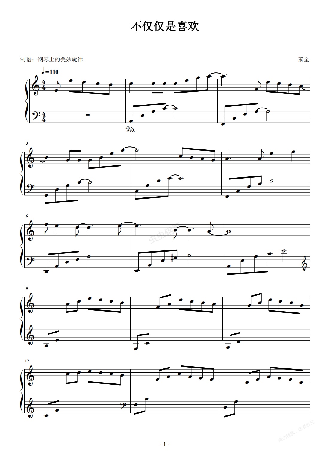 钢琴谱:不仅仅是喜欢 C调简易版 萧全
