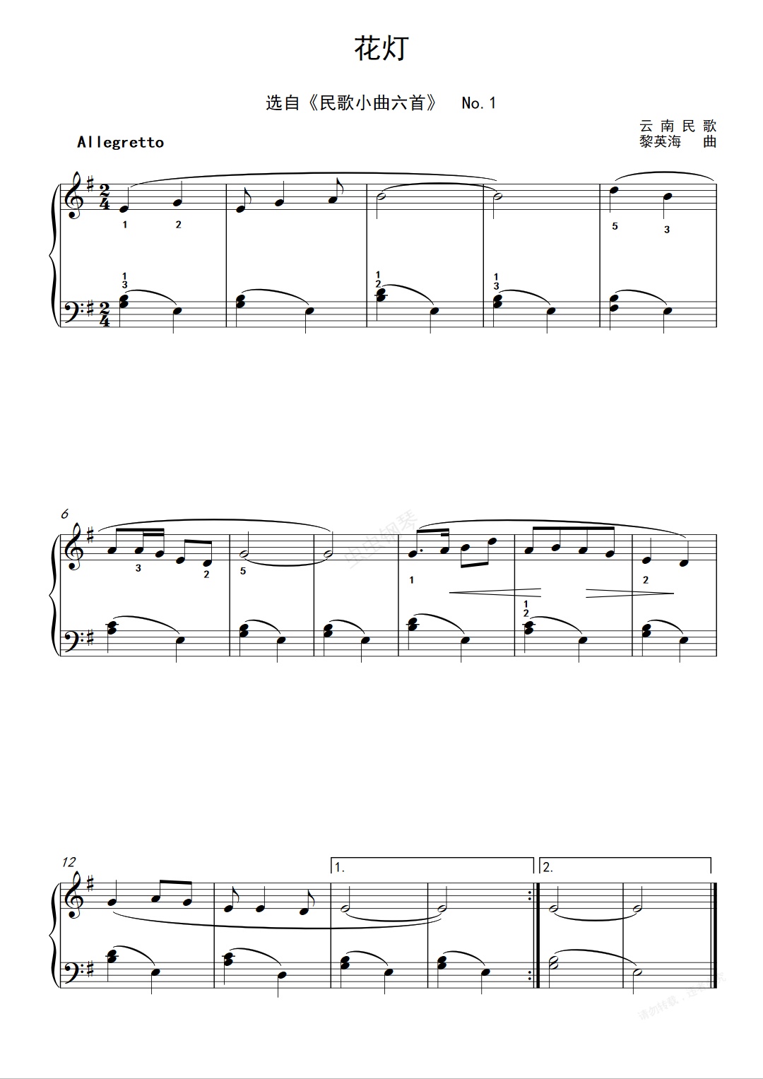 钢琴谱:1级-乐曲-花灯