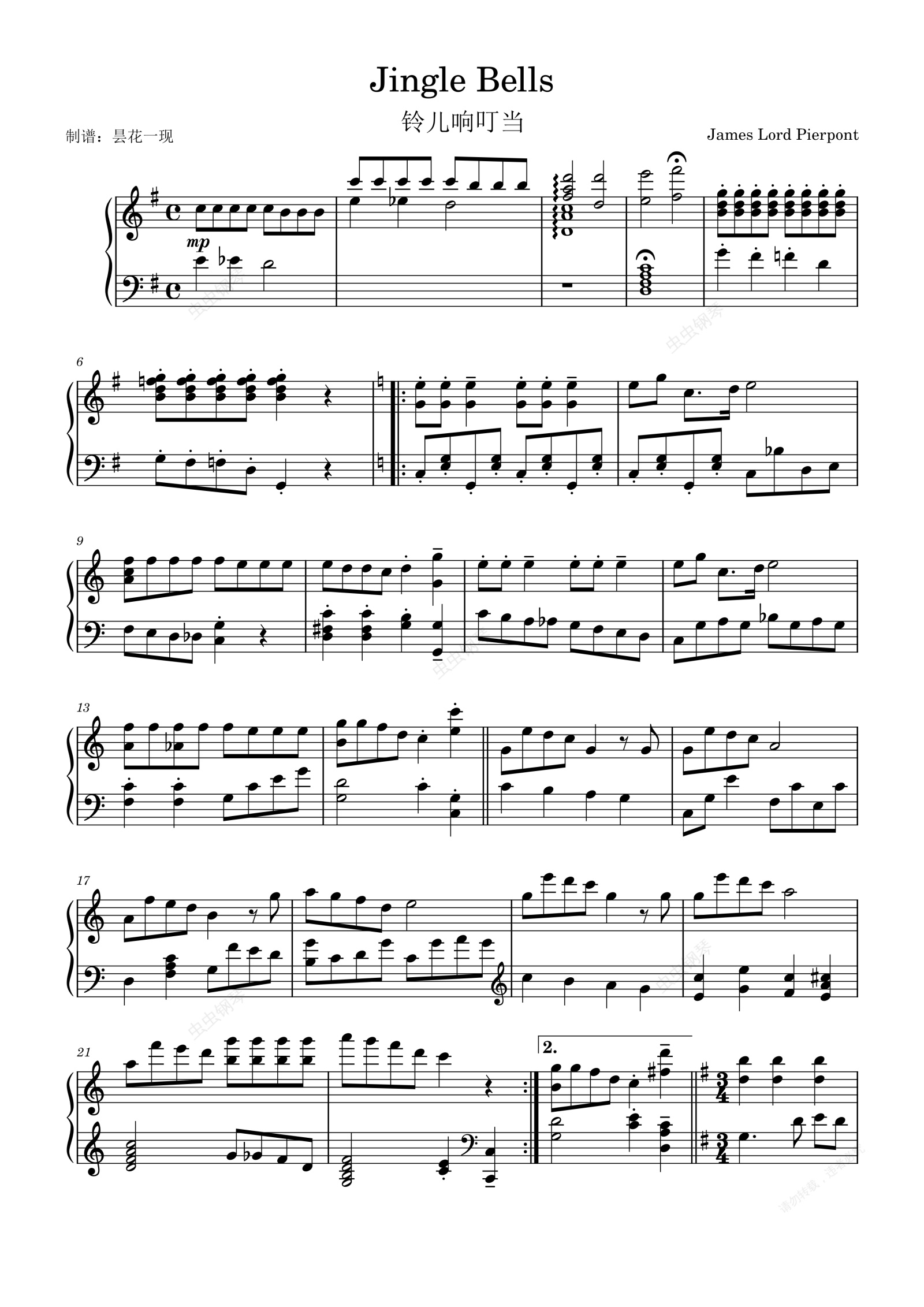 钢琴谱:铃儿响叮当Jingle Bells,圣诞歌曲