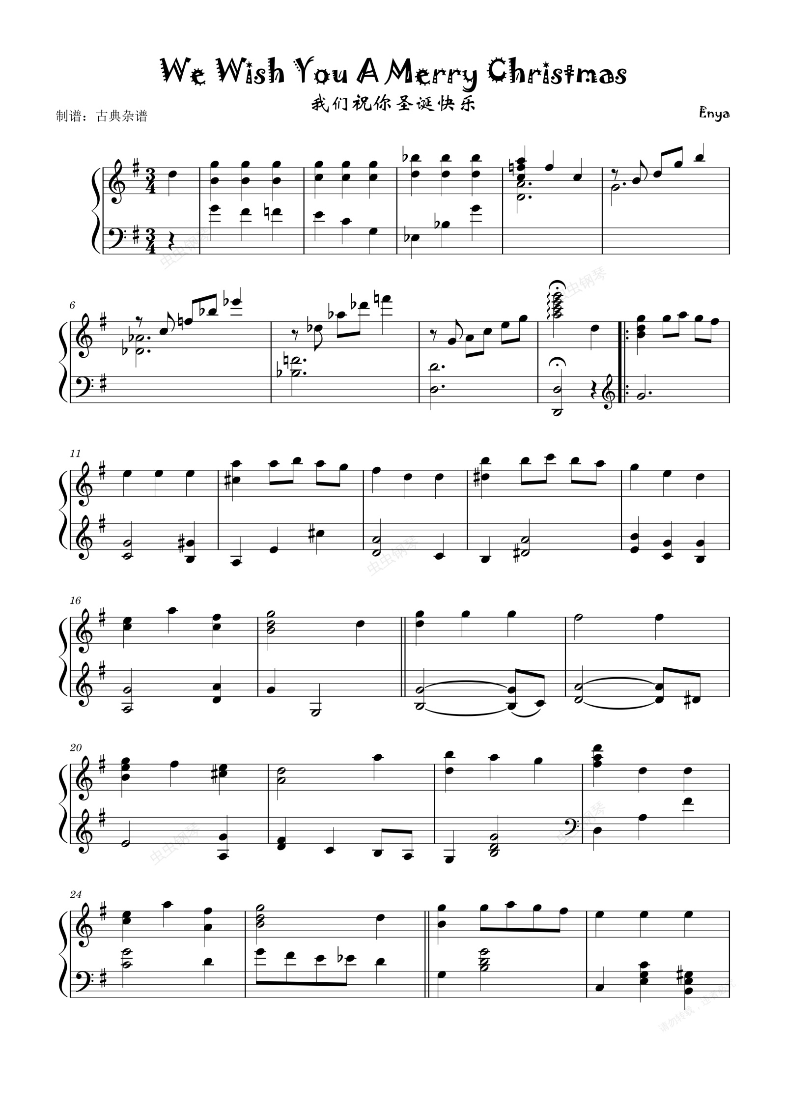 钢琴谱:We Wish You A Merry Christmas我们祝你圣诞快乐