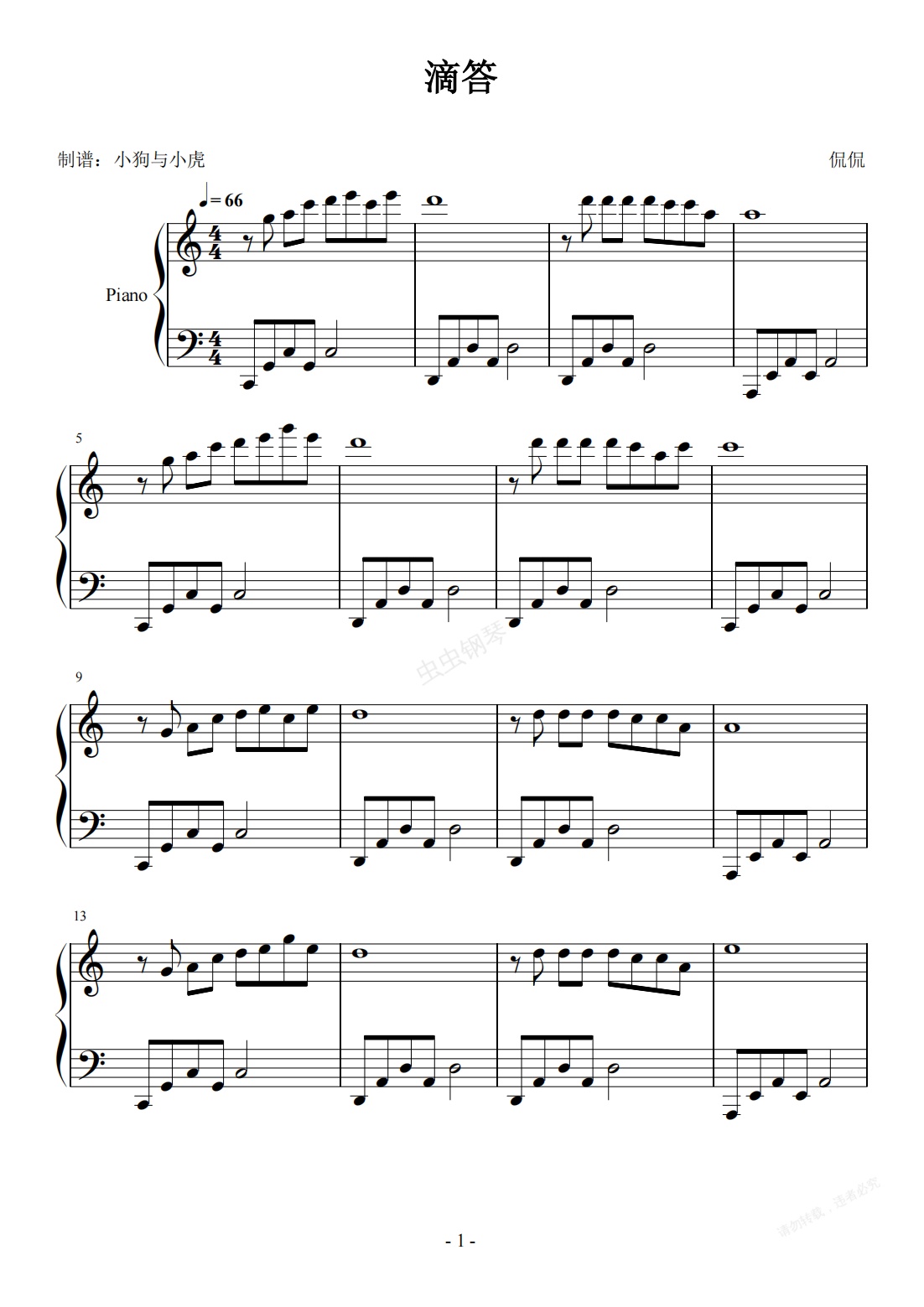 钢琴谱:嘀嗒 C调 简易版