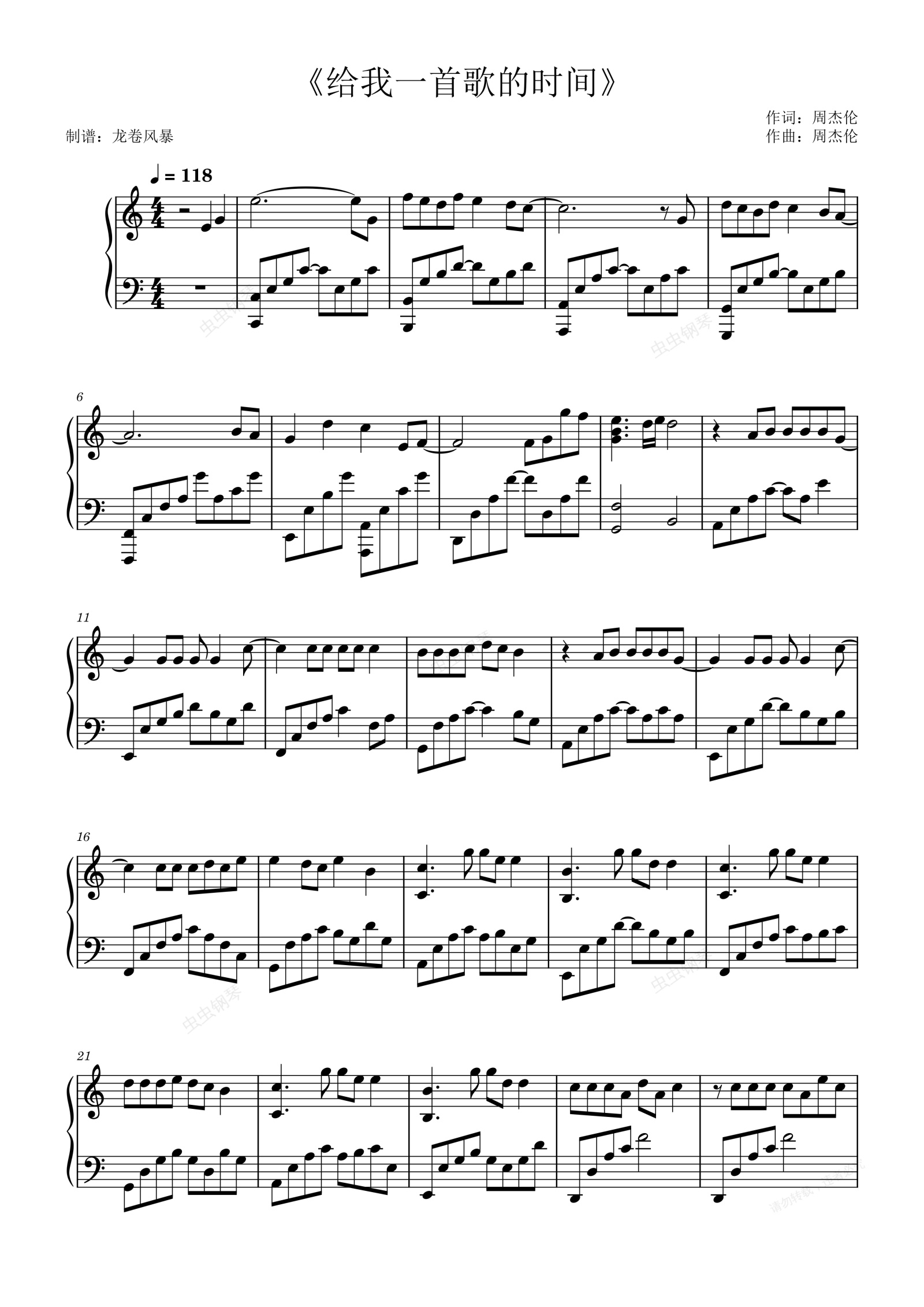 钢琴谱:《给我一首歌的时间》周杰伦(C调唯美演奏版)