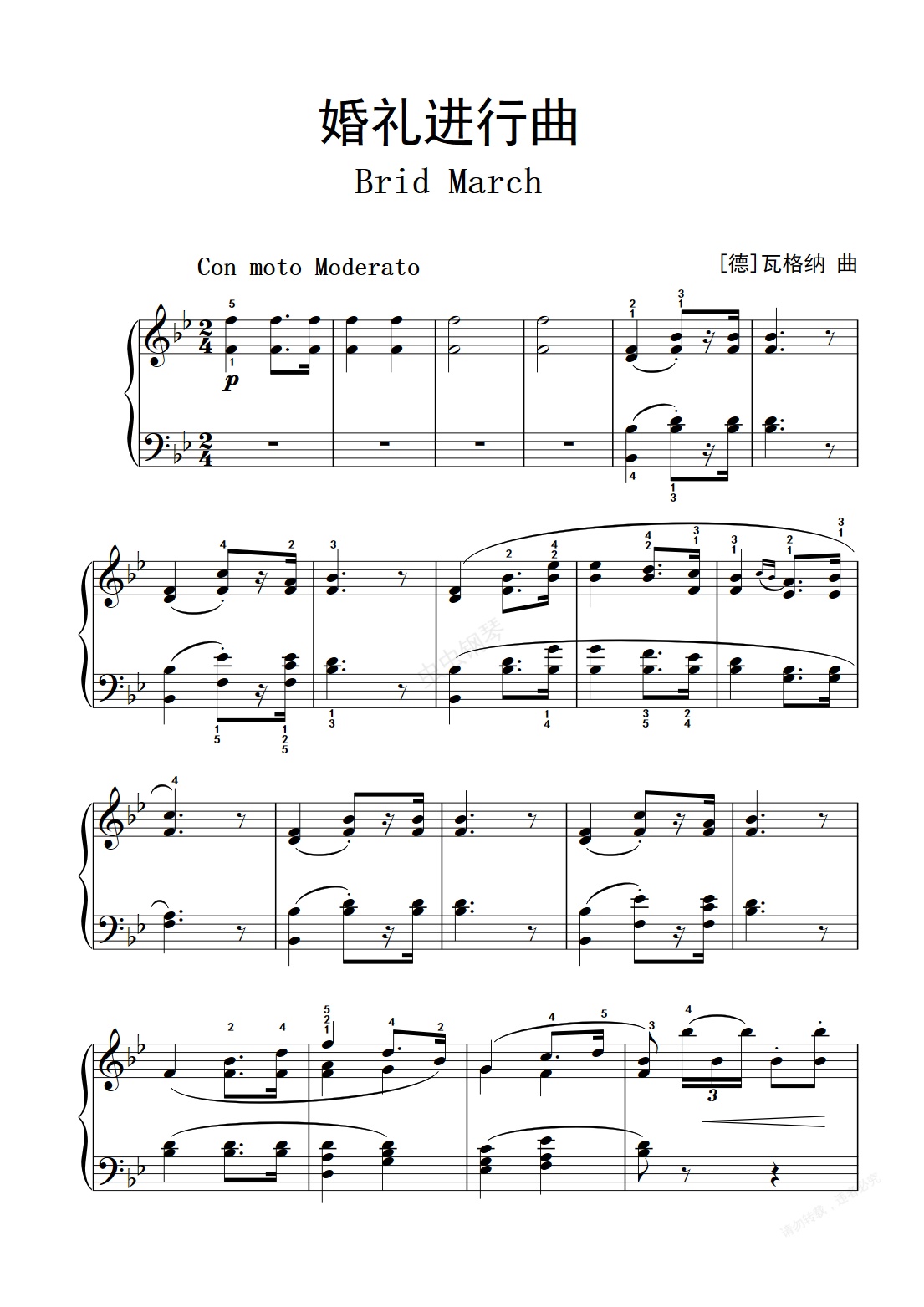 钢琴谱:婚礼进行曲 瓦格纳 教学演奏 正规版