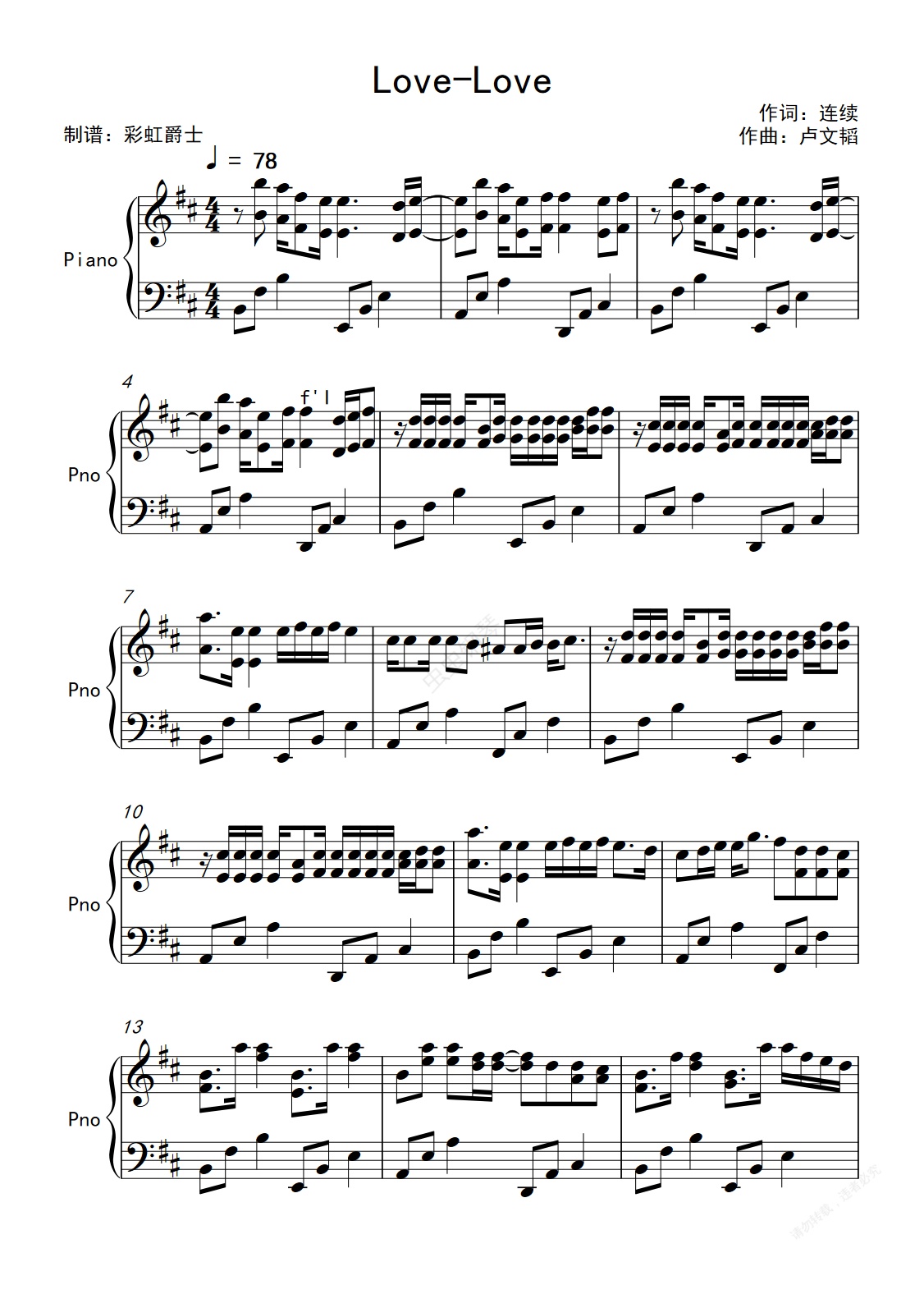 钢琴谱:Love Love-简单版 抖音 金润吉