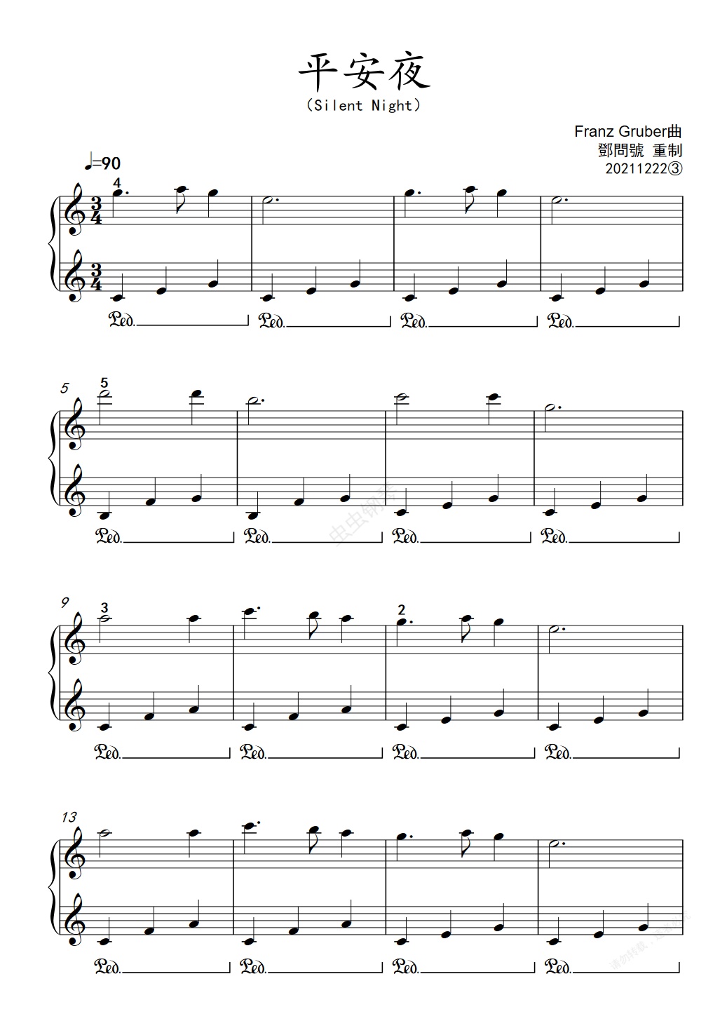 钢琴谱:《平安夜》(Silent Night)C大调完美演奏版