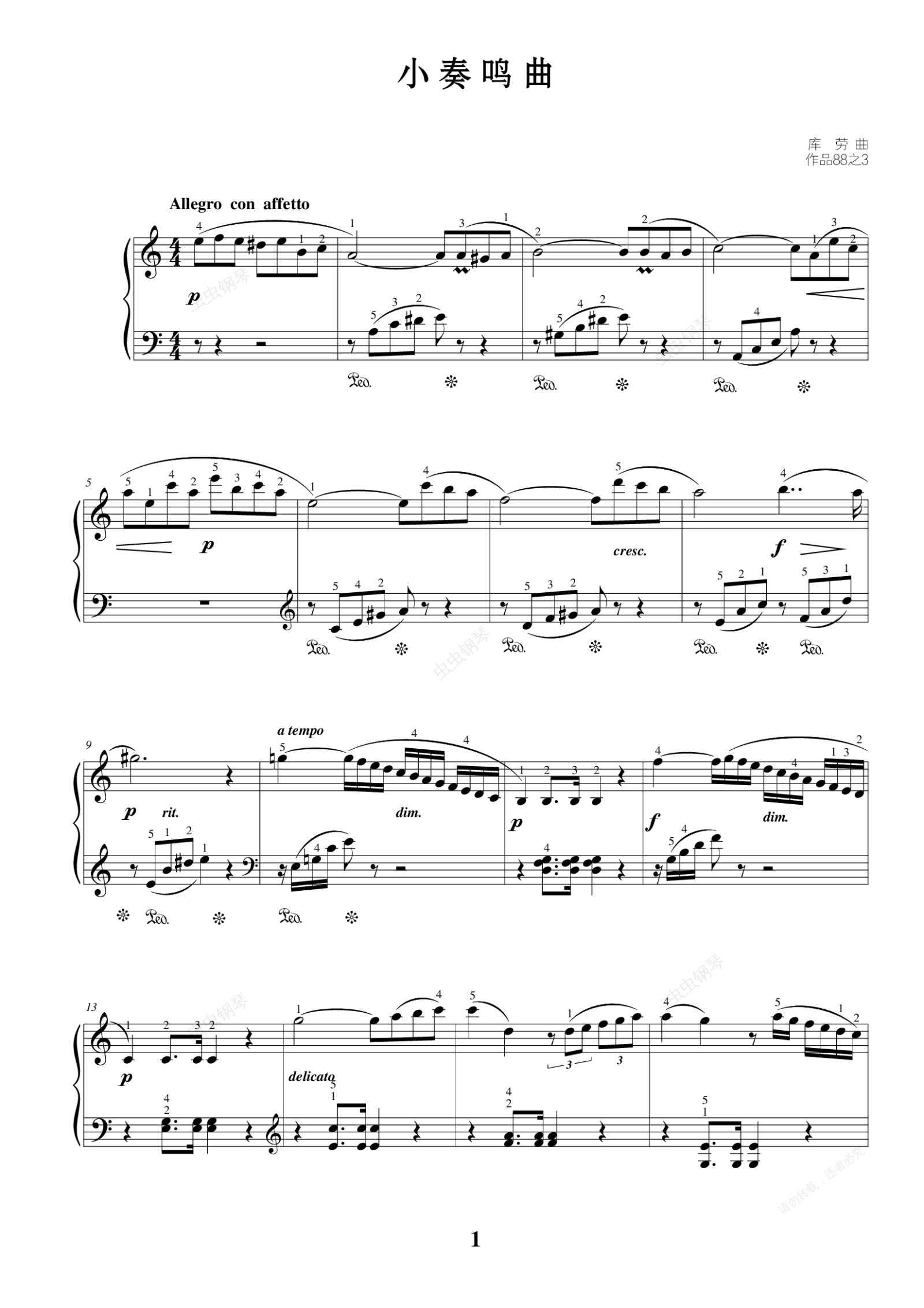 钢琴谱:72. 小奏鸣曲第一乐章(作品88之3)