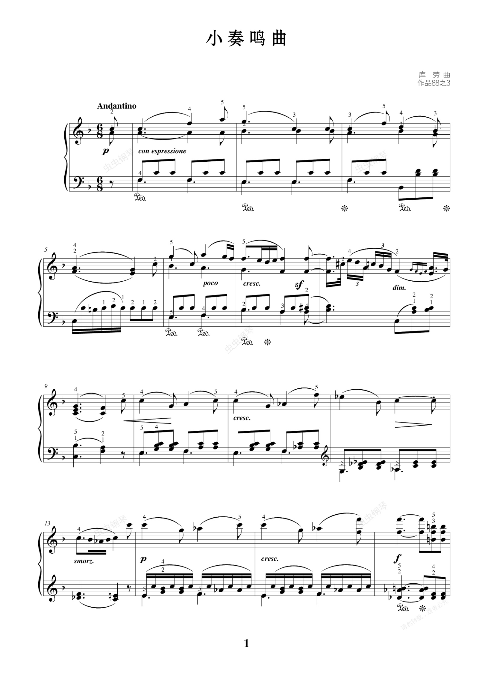 钢琴谱:73. 小奏鸣曲第二乐章(作品88之3)