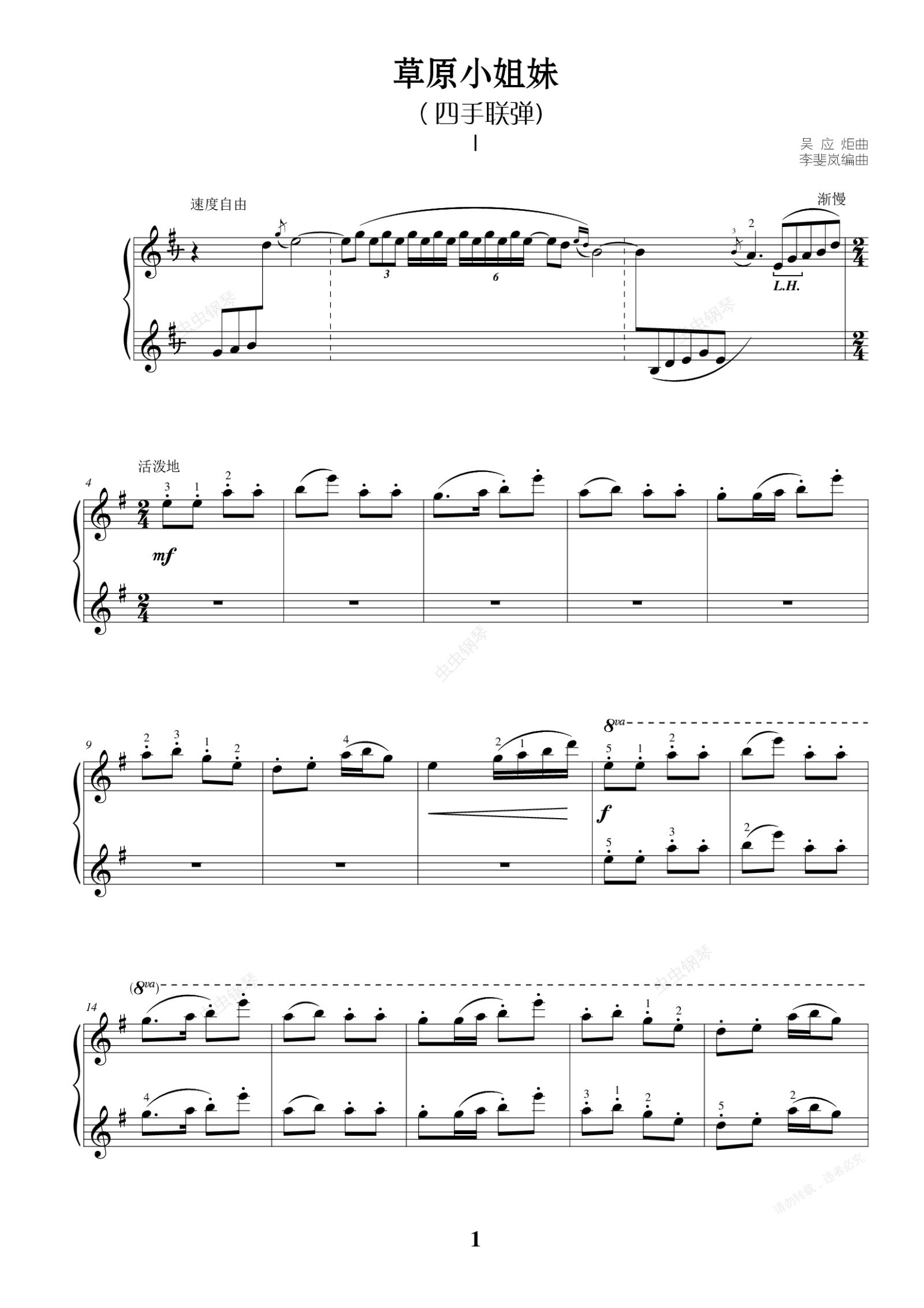 钢琴谱:86. 草原小姐妹I(四手联弹)