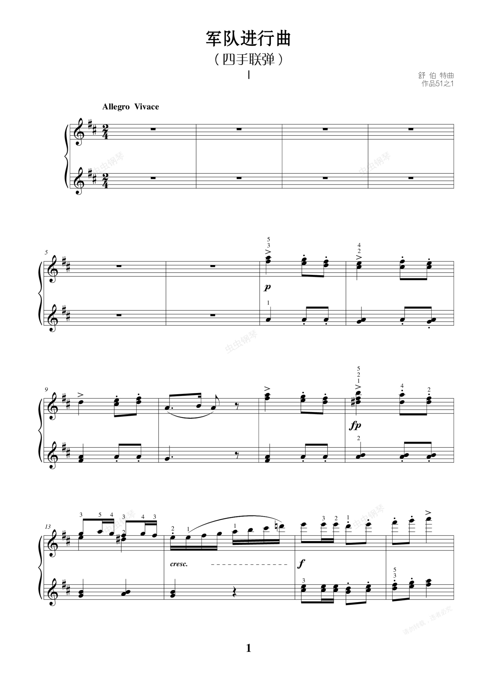 钢琴谱:88. 军队进行曲I(四手联弹)