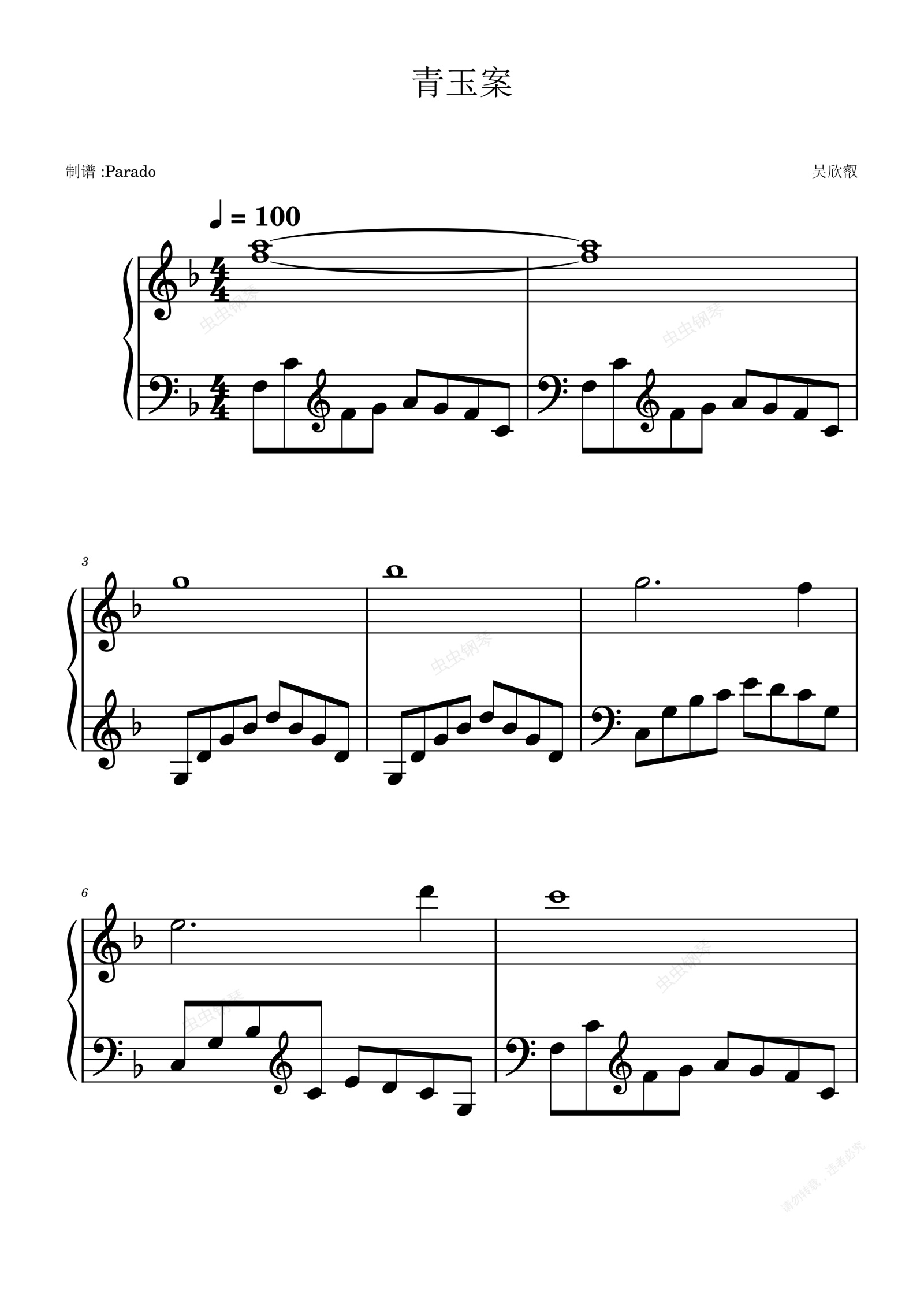钢琴谱:青玉案-吴欣叡-仙剑奇侠传三龙葵插曲-好弹又好听
