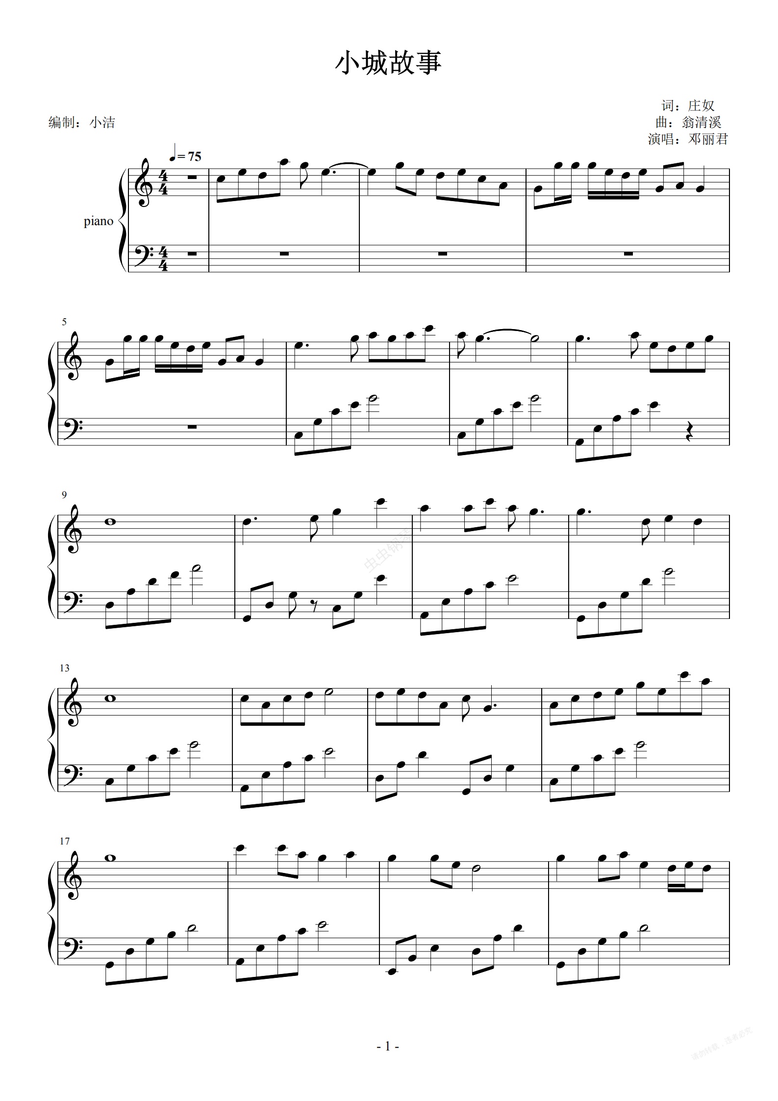 钢琴谱:小城故事(一看就会极简公式版c调)