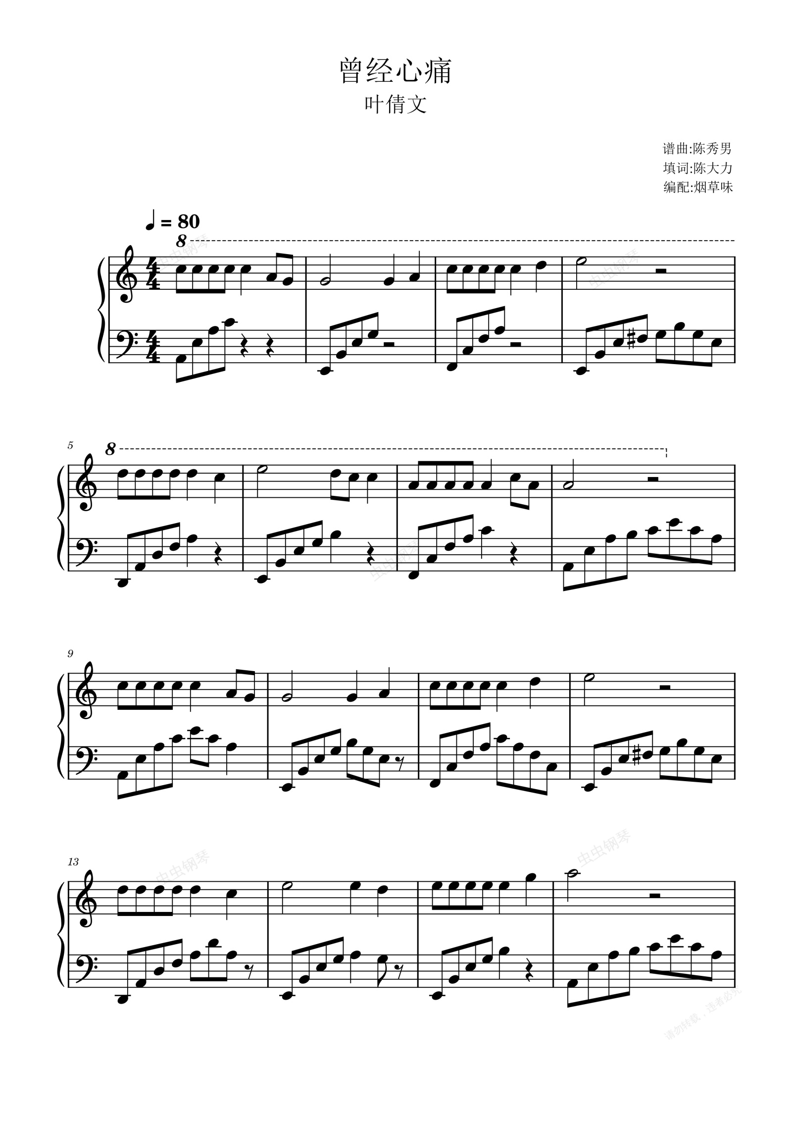 钢琴谱:曾经心痛(叶倩文演唱)
