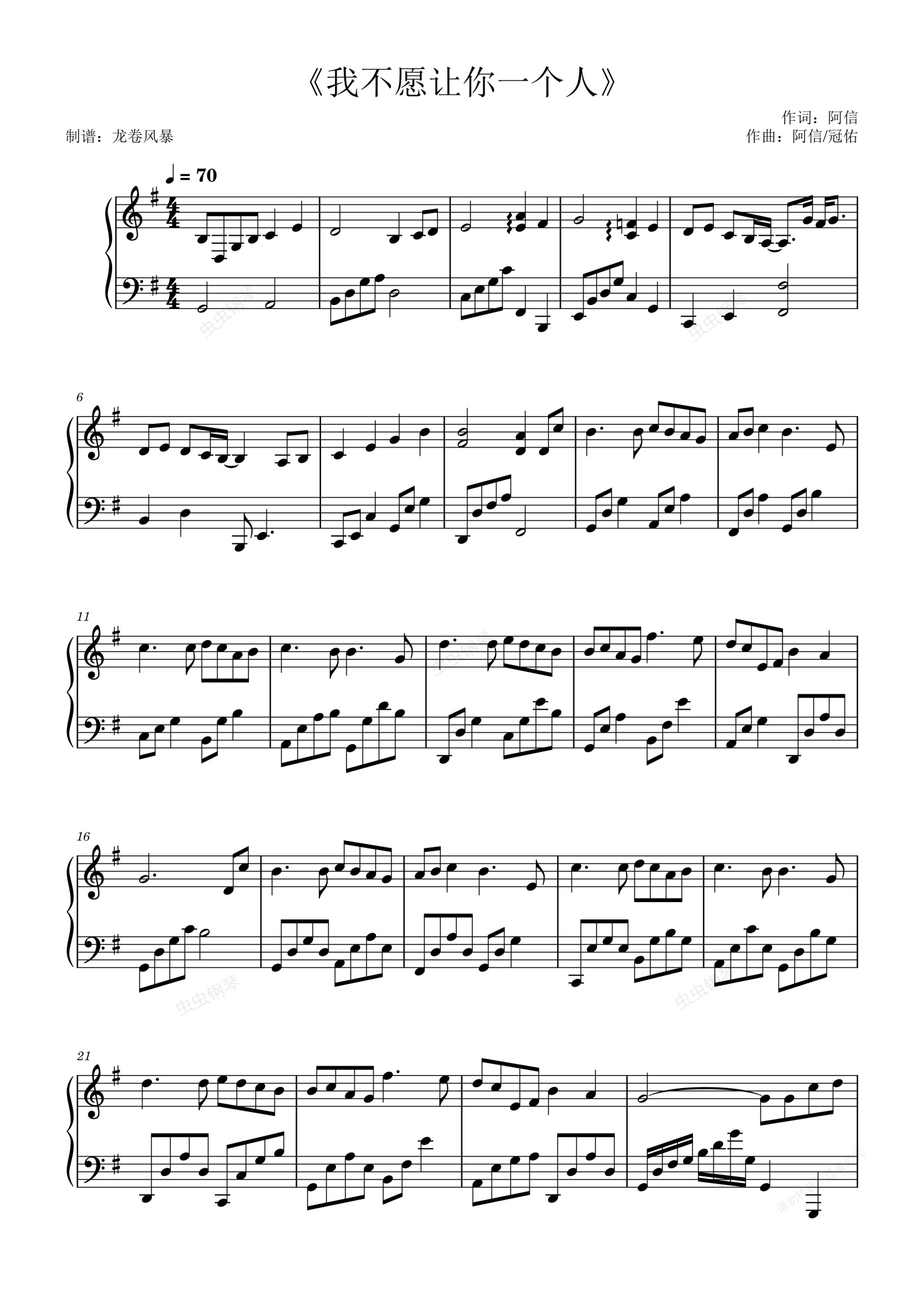 钢琴谱:《我不愿让你一个人》(完美演奏版)