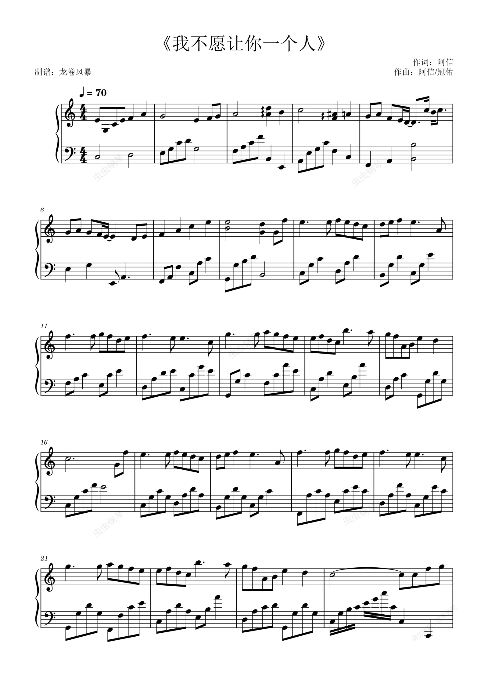 钢琴谱:《我不愿让你一个人》五月天(C调完美演奏版)