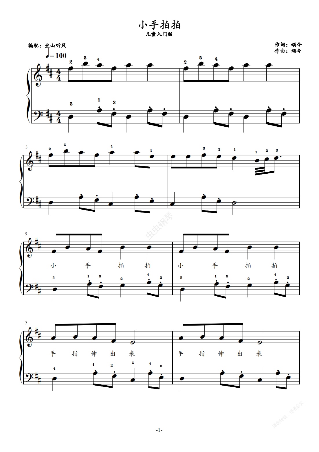 钢琴谱:小手拍拍——儿童入门版(D调)