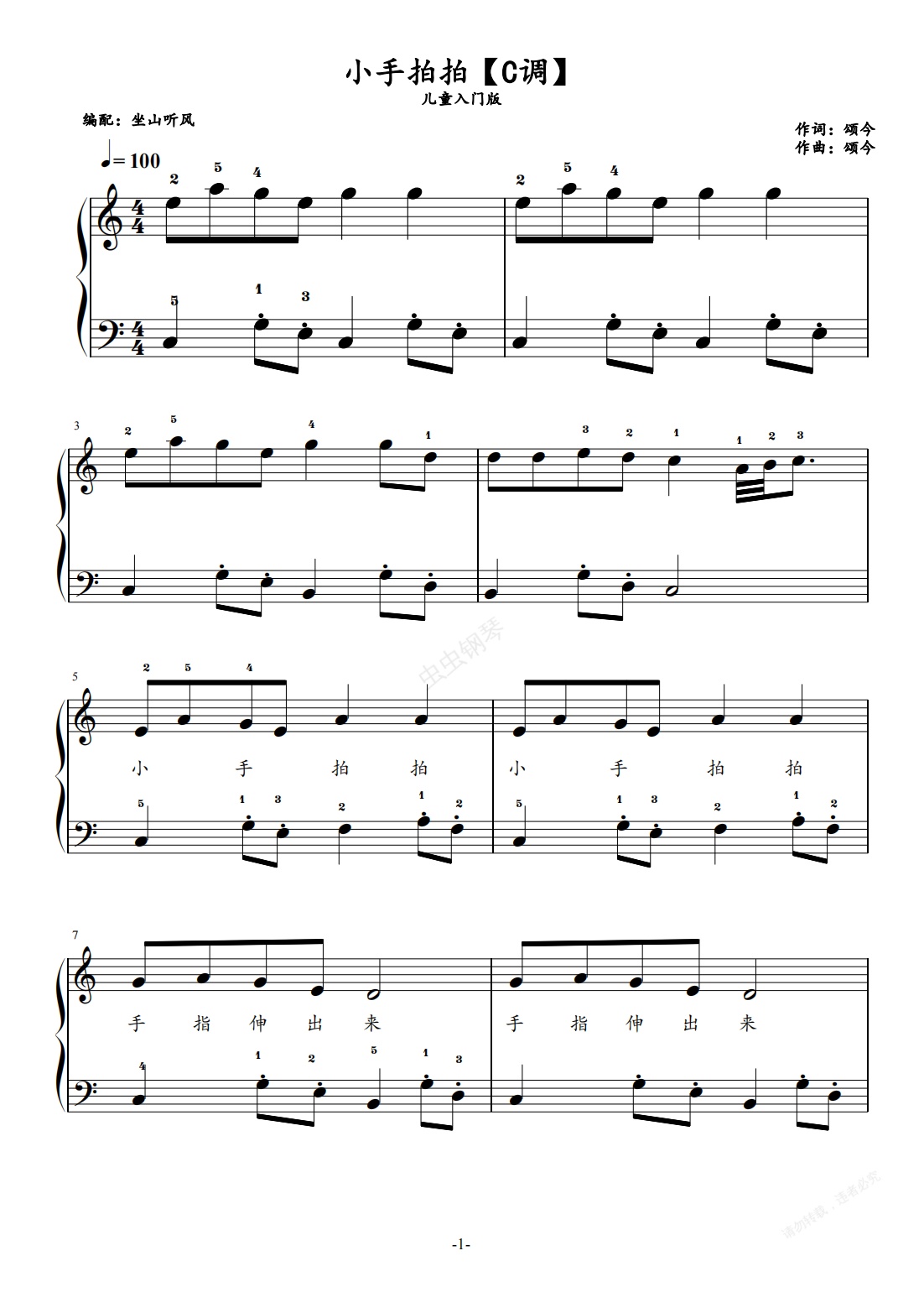 钢琴谱:小手拍拍——儿童入门版(C调)