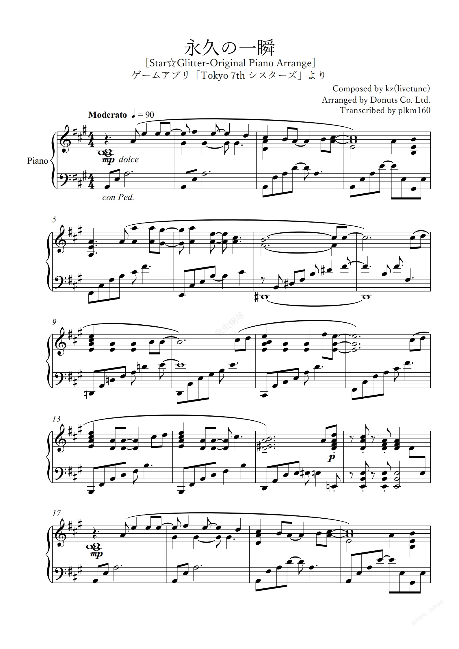 钢琴谱:【东京七姐妹】 OST 永久の一瞬 [Star☆Glitter-Original Piano Arrange]