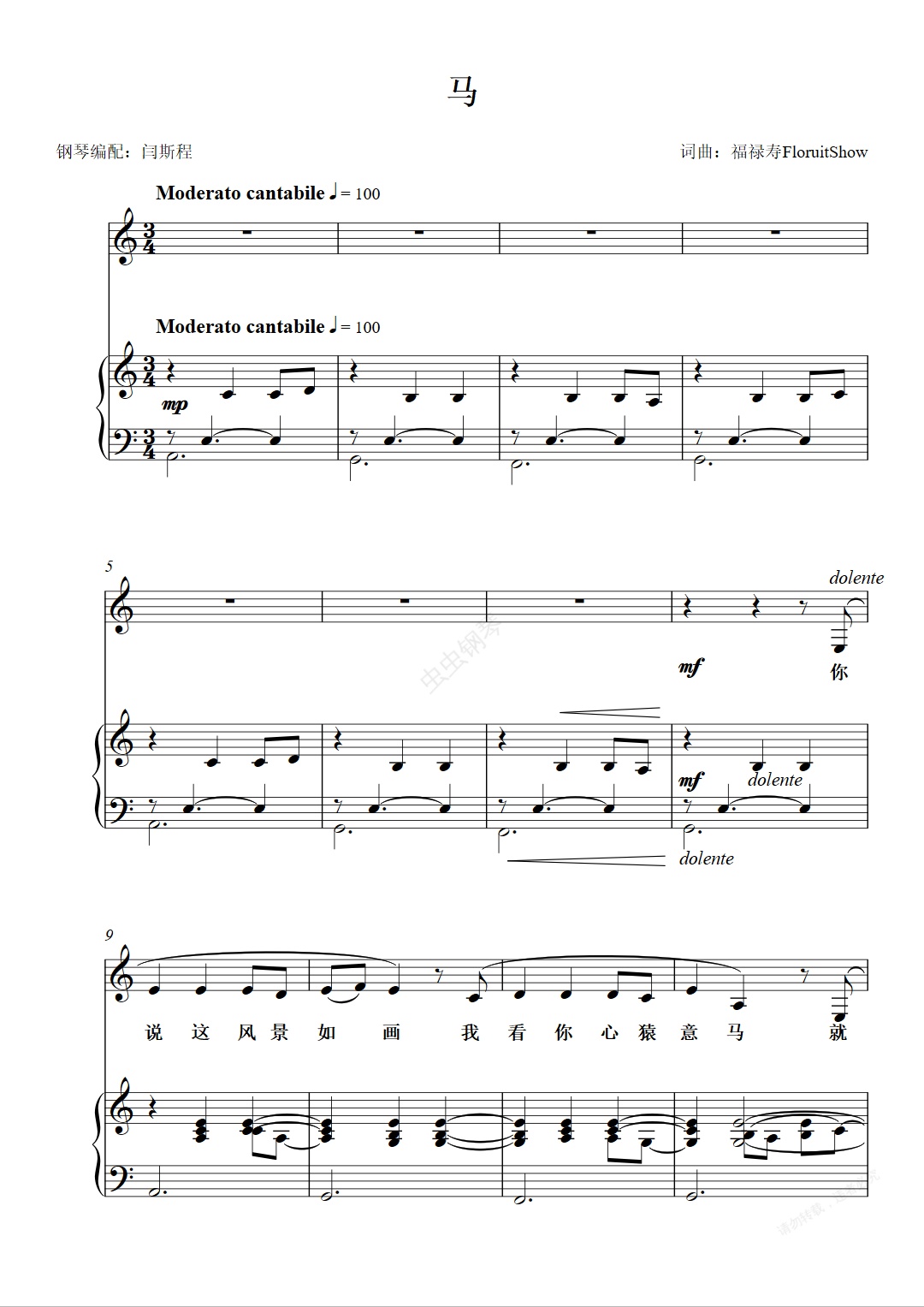 钢琴谱:福禄寿《马》原版钢琴弹唱