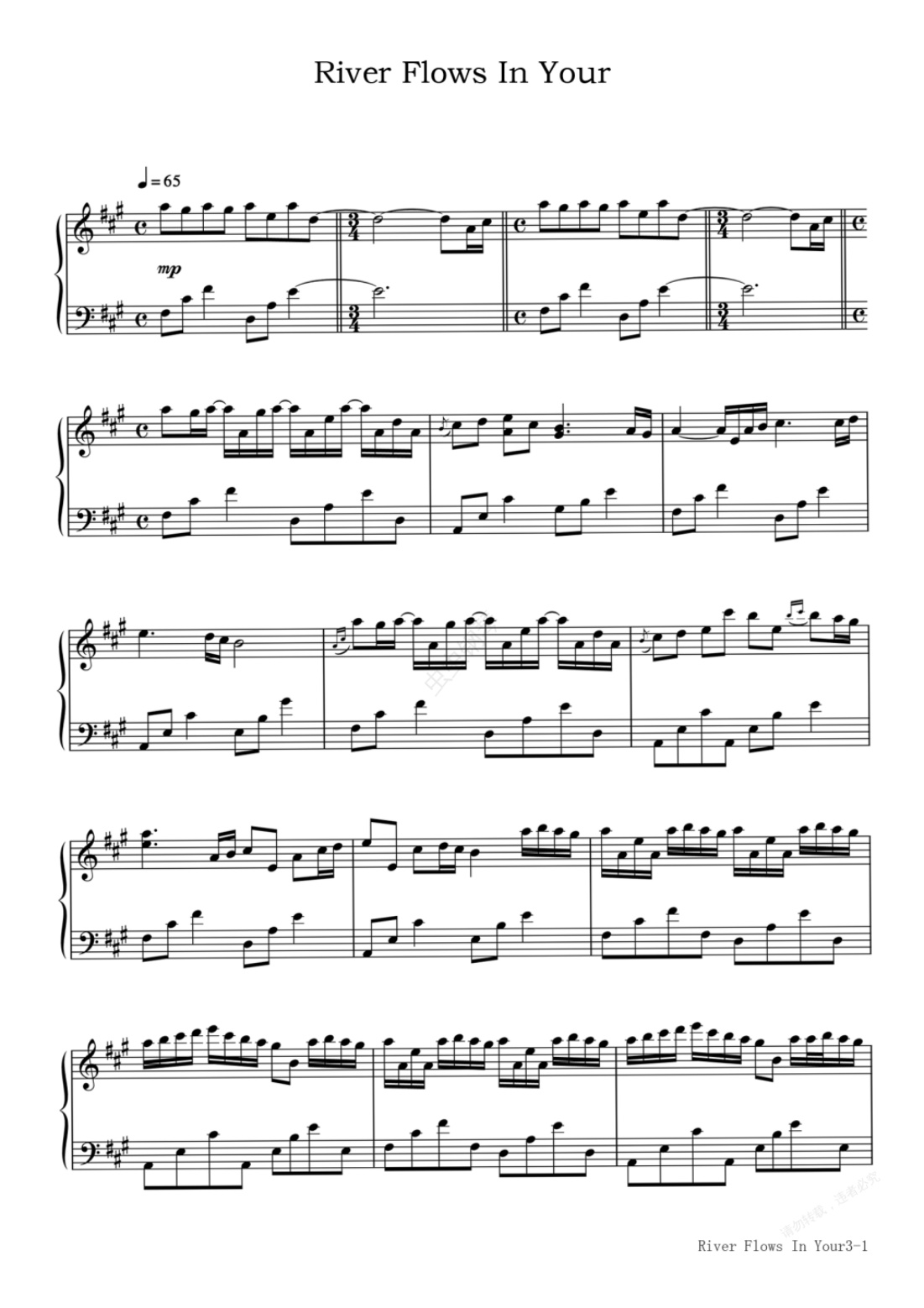 钢琴谱:Yiruma - River Flows In You (你的心河)
