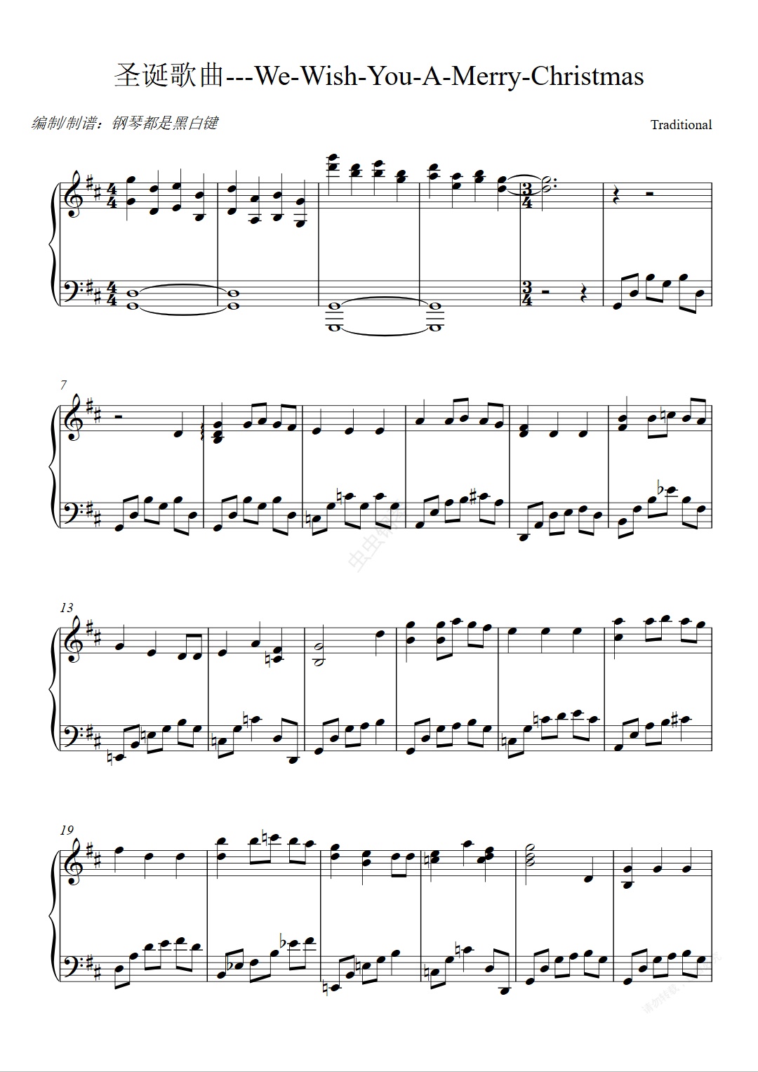钢琴谱:圣诞歌曲---We Wish You a Merry Christmas