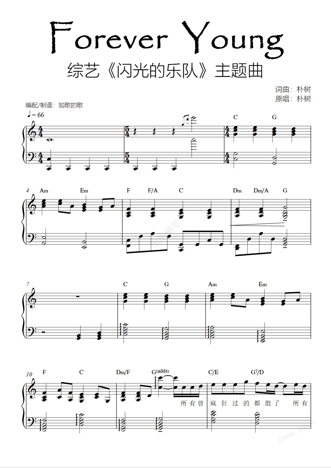 钢琴谱:Forever young闪光的乐队new boy新编可独奏&弹唱