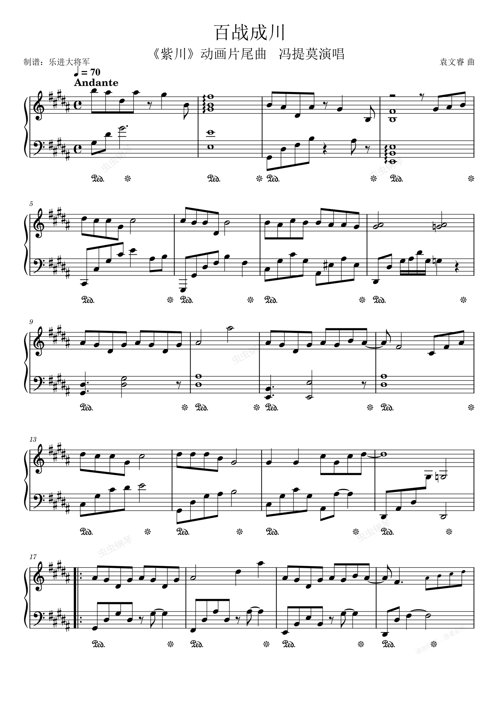 钢琴谱:百战成川 原调 冯提莫演唱 《紫川》动画片尾曲