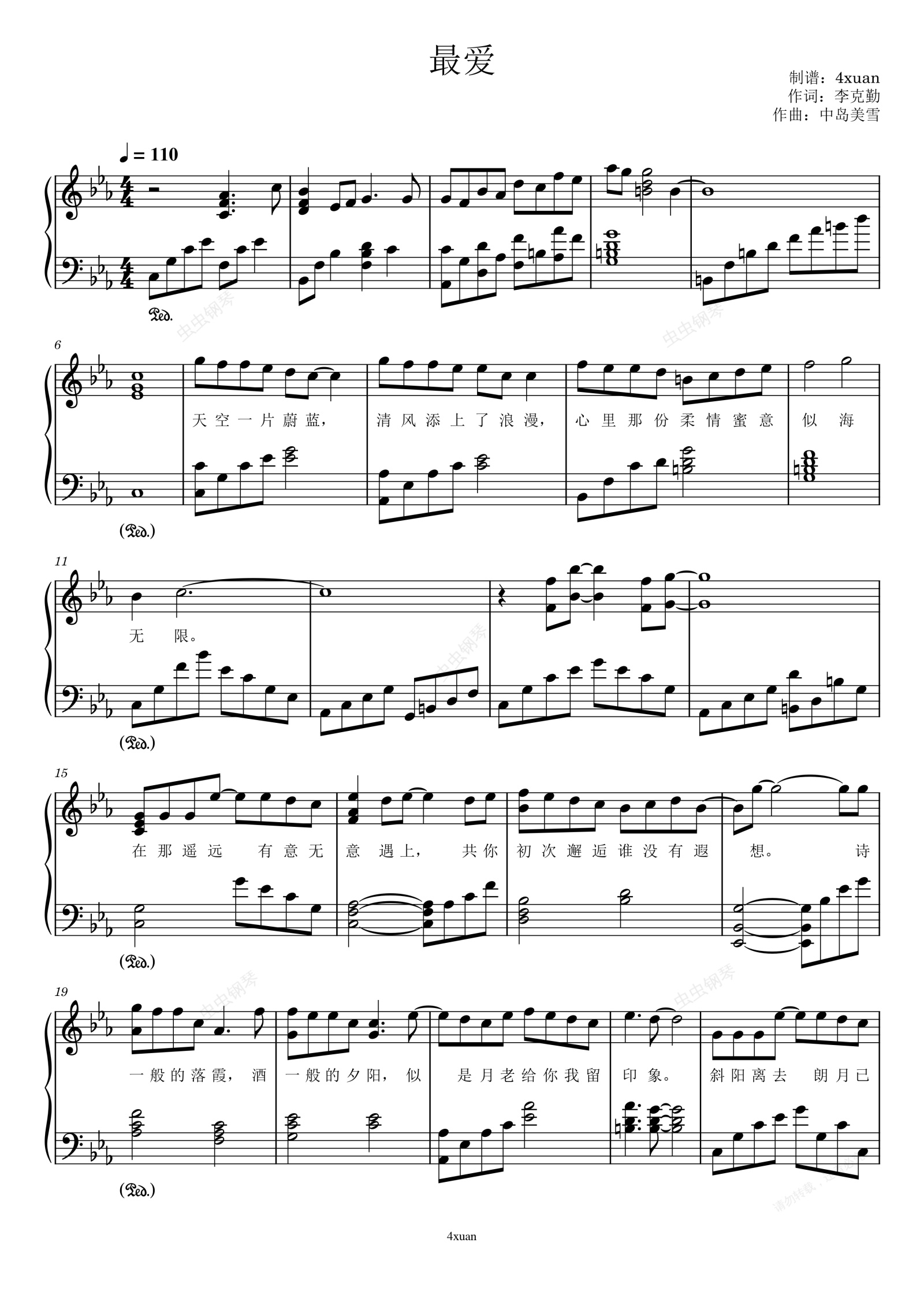 钢琴谱:最爱-周慧敏 原调弹奏谱