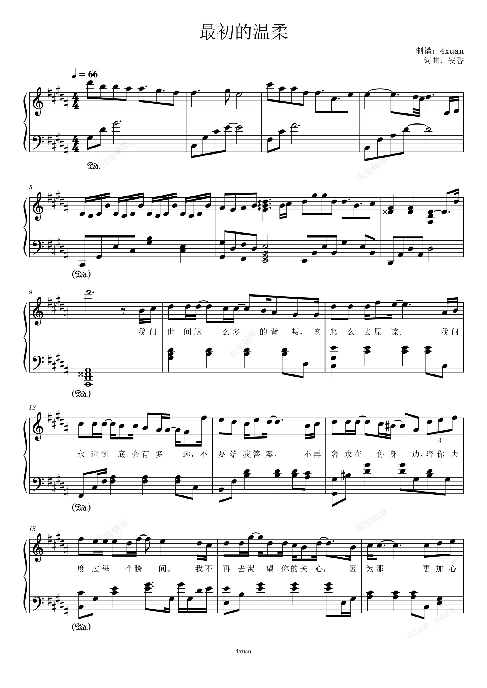 钢琴谱:最初的温柔-赵乃吉 弹奏谱