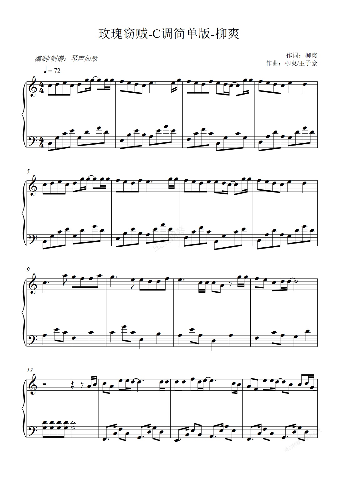 钢琴谱:玫瑰窃贼 -好听易弹