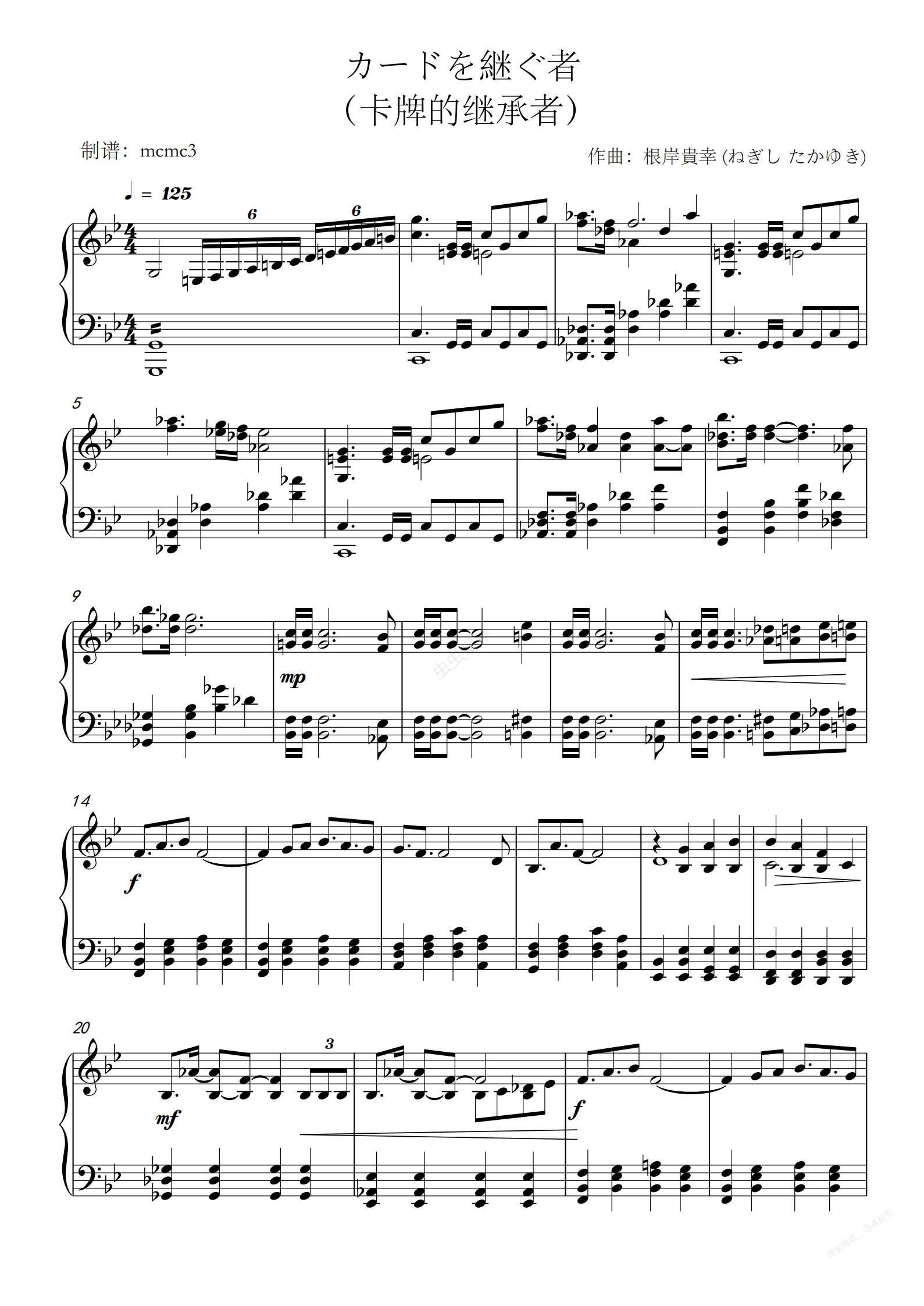 钢琴谱:【カードを継ぐ者】(卡牌的继承者)——魔卡少女樱(百变小樱)