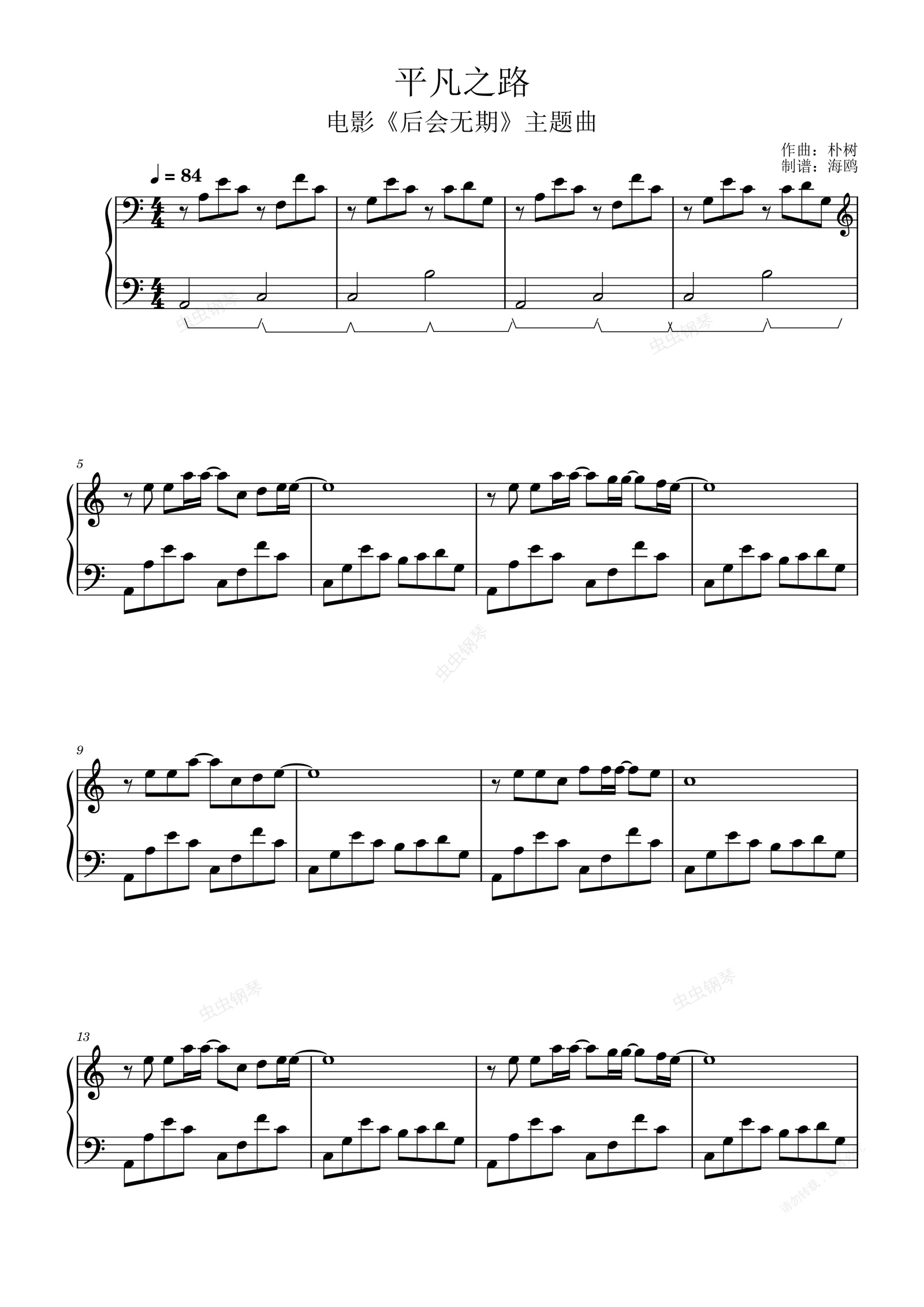钢琴谱:C调 平凡之路 朴树 韩寒 猎户星座 电影《后会无期》的主题曲 The road to ordinary